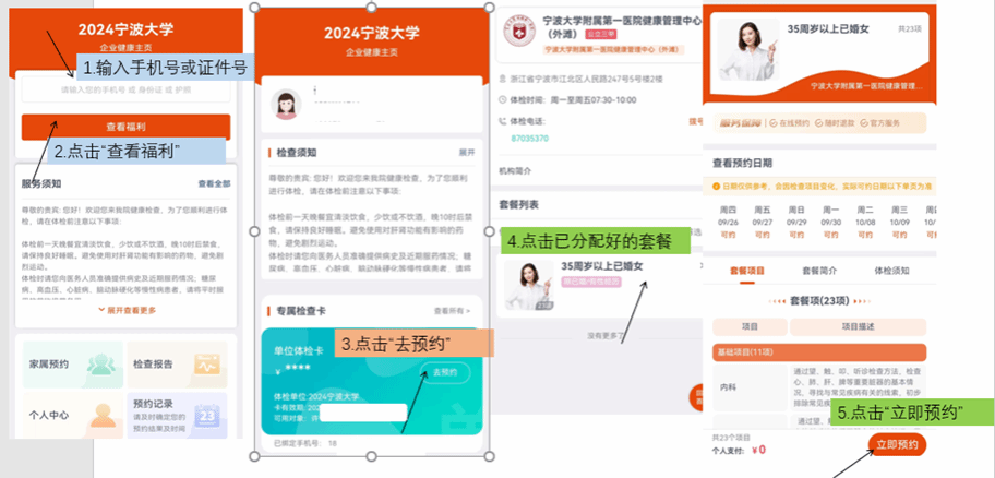 1.请各单位负责通知本部门的教职工到事先选定的体检中心体检,原则上不得更改体检地点。请提前进行微信预约或电话预约,并在预约日期当天进行体检。如因故不能在预约当天参加体检,请在手机“订单页”最下方“修改体检时间”或拨打前台电话(外滩院区:0574-87035370;方桥院区:0574-87086039)取消预约后,再择期预约体检。