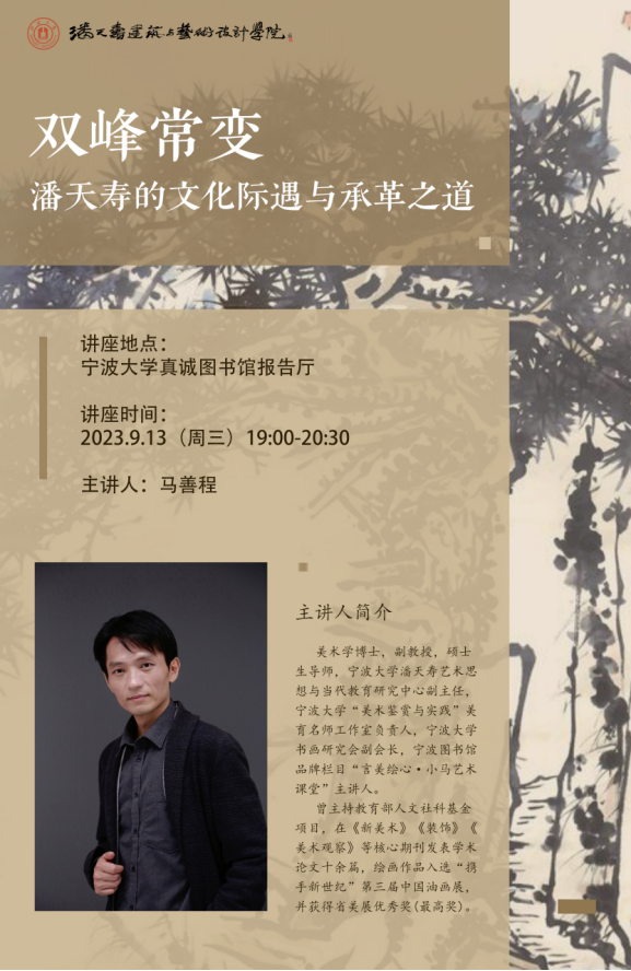 作为现代书画家和美术教育家,潘天寿卓尔不凡的一生和历劫未泯的风骨道统,折射了二十世纪中国社会的风云变幻和文化跌宕。在面对中西文化交锋的时代浪潮,并意识到传统艺术的衰颓之际,他以立峰拓境之姿,铭刻“强其骨”和“一味霸悍”,又以“两峰论”之阔达胸怀,喻中西文化各据千秋。潘天寿潜心传统又无惧拓新的艺术精神,在如今呈现多维特征的文艺新时代应声而起,回应了中华民族的文化自信和复兴梦想。他以深厚的艺术学养和时兴的教育理念,终成一代学者型画家和引路之儒士。时值“盛世修典”中国历代绘画大系成果展·宁波特展举办之际,我们一起走进书画大家潘天寿的艺术世界,观其诗、书、画、印之精华,看其承传之“常”,赏其应时之“变”,共同领略“常变之道”乃为艺术、为人生之至理也。