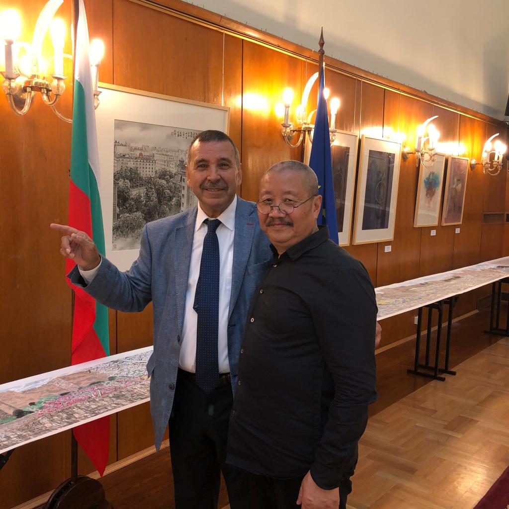 两国艺术家共创作128幅油画、水墨画等艺术作品,系列作品将持续展出至10月7日。其中徐仲偶院长创作的《穿门越堡叹千秋》,作品长9米,主要表达保加利亚人民不屈不挠奋斗精神,同时,潘艺学院学术委员会周至禹教授也共有18幅作品一并参展。