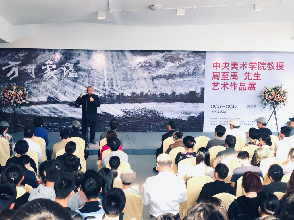 和中央美术学院联合主办的“方寸象溢——周至禹教授艺术作品展”在宁波市扬帆美术馆开幕,向新中国70周年华诞献礼。