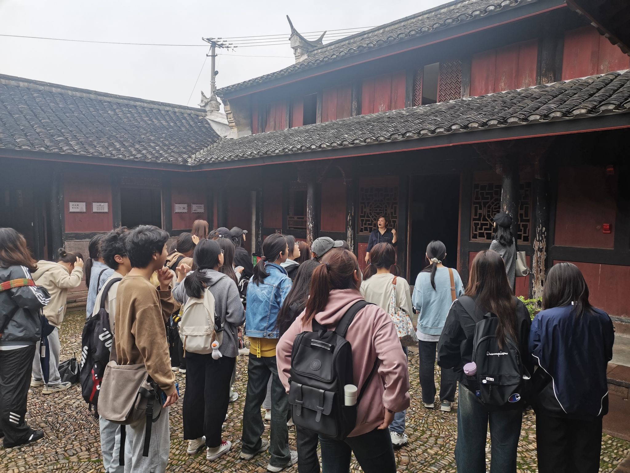 在潘老先生的故居中,同学们穿梭在充满古韵的阁楼里了解了潘老先生从幼儿到暮老,从青萍之末到烈日高阳的的人生历程。走过他的书房,看着他的字迹,凝视着陪他从古自今的器具,恍惚间同学们身上也多了一股水墨的气息,好似更深刻的理解了潘老先生的画作。明白其一笔一划都是学问,半纸半墨皆是奋斗,看懂了潘老先生在那个动荡的年代为国学尤其是国画的出路进行的斗争。