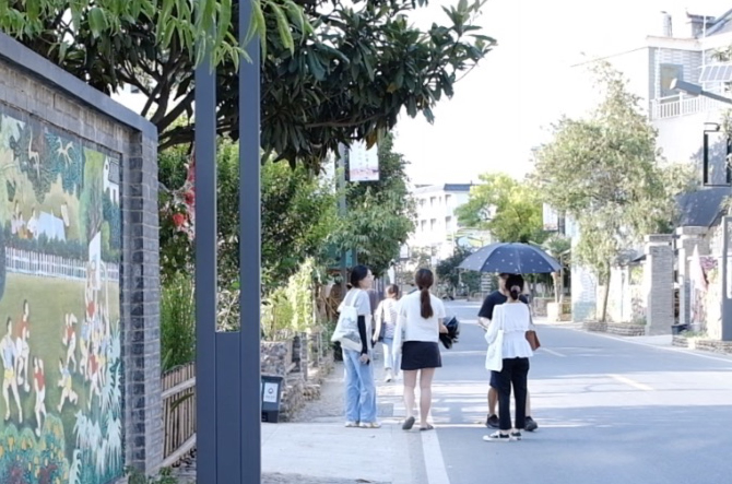 正在衢州余东村调研中杨老师和学生们认真听取当地驻村干部和村干部的讲解余东村的历史和发展:近年来,村里结合农房整治进行风貌提升,收储了20多栋老房子,统一打造成同心画坊、清廉乡村展示馆、竹编馆、乡贤馆等特色场馆。余东村还将提升村庄文化和风貌,全力推进中国农民画第一村的建设。