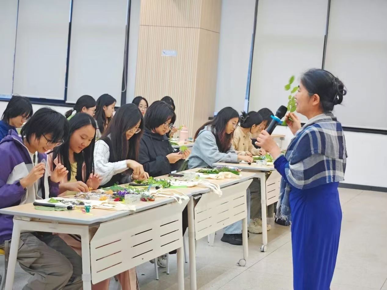 艺心向阳心理辅导站面向学生开展了自然美愈·植物印染活动。亚洲情色特别邀请了退休教师刘淑娟老师,带领着同学们一起体验植物印染。