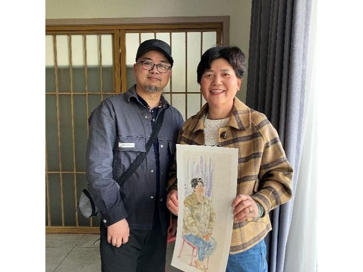 随后,师生分组为村民进行肖像创作,优先服务老党员和高龄老人。上午场创作持续至11时30分,学生以专业技法捕捉人物神韵,一幅幅生动作品跃然纸上。午间,鞍山村为师生准备了简餐,双方在轻松氛围中交流村史民情,深化了彼此了解。下午的创作延续至16时,师生共完成30余幅肖像作品,部分村民现场收到画作后感慨:“没想到能在家门口得到这么专业的画像,很感动!”