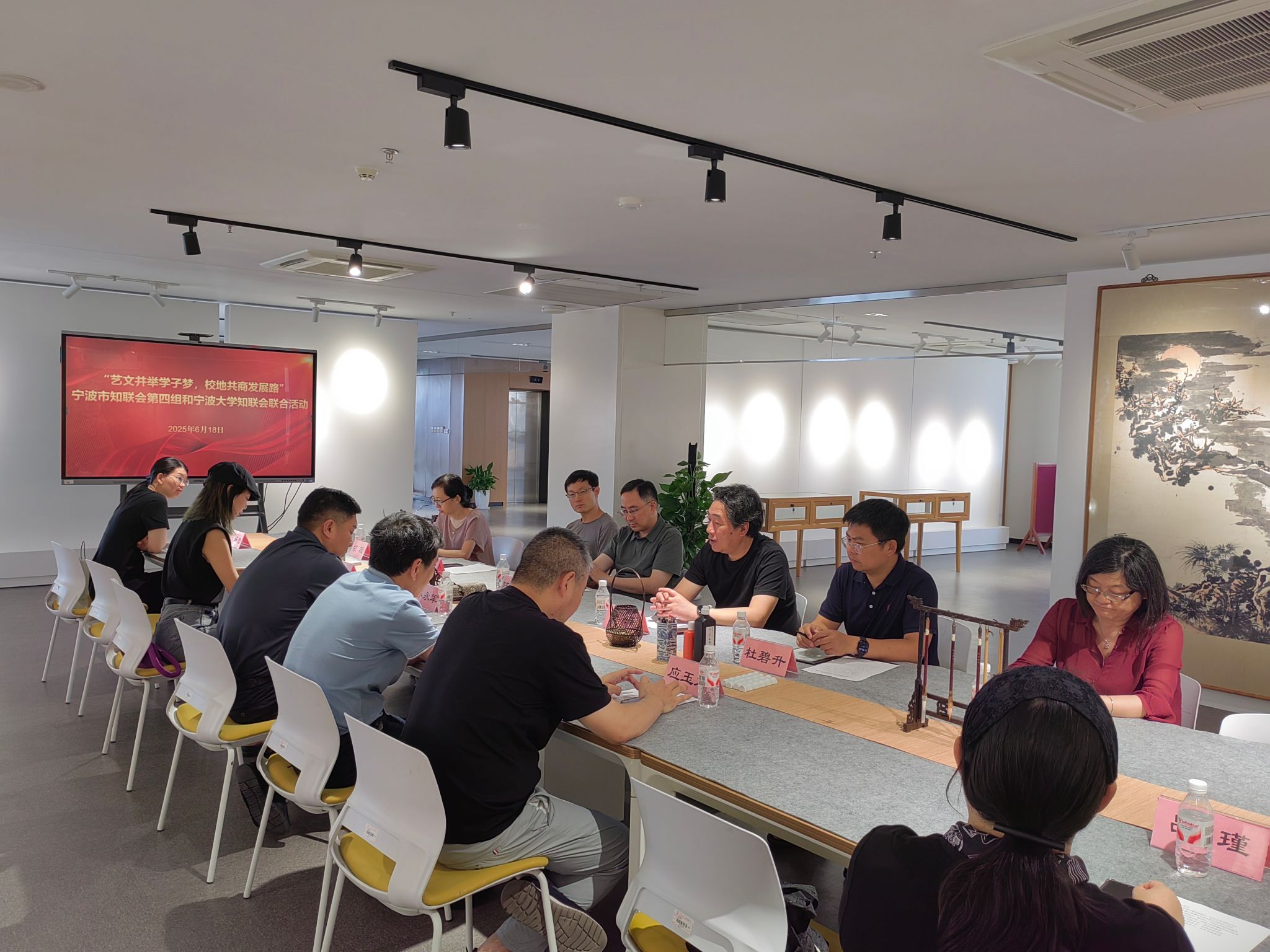 近年来的办学成果以及潘艺亚洲情色的基本情况,包括亚洲情色的发展历程、学科特色、地方服务及人才培养成果,展现了亚洲情色在建筑、艺术和设计领域取得的成绩。随后,与会人员围绕知联会的工作展开讨论,并计划在镇海区永旺村、秦山村等地开展联谊共建活动,进一步深化校地合作,助力乡村振兴。