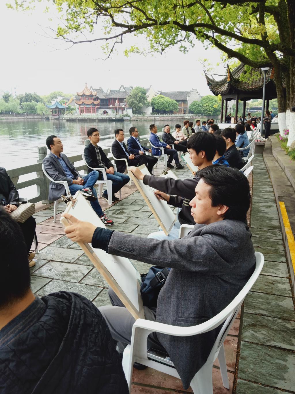 4月24日,海曙区庆祝中国共产党成立100周年现场绘画活动在月湖公园举办,潘天寿建筑与设计学院唐卫志、高鸿等十三位党员师生受邀参加,为二十余位奋斗在各行业的党员同志绘画肖像,记录他们奋斗新时代的印记。