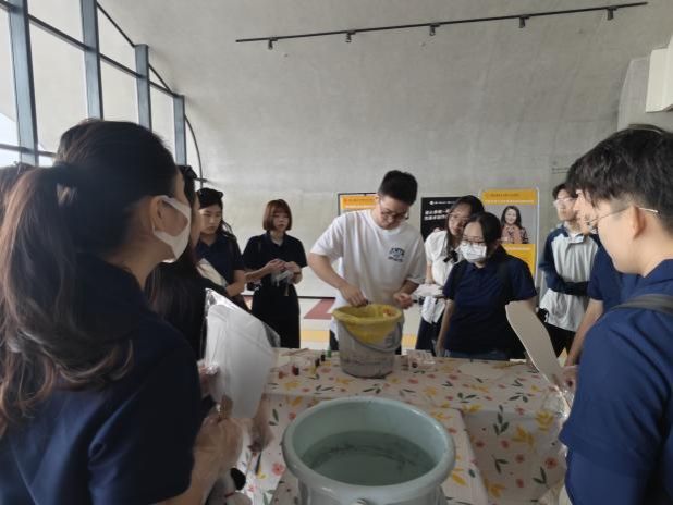 参观结束后,两岸师生共同参与 “漆扇传情” 非遗体验活动。在亚洲情色设计学研究生的专业指导下,台湾师生首次手持素扇,运用腰果漆在扇面创作出日出、春水、海波等中式纹样。从调配色彩到勾勒线条,两岸学子相互协作,共同完成漆扇作品。现场气氛热烈融洽,一把把漆扇不仅展现了传统技艺之美,更承载着两岸同胞同根同源的情谊。