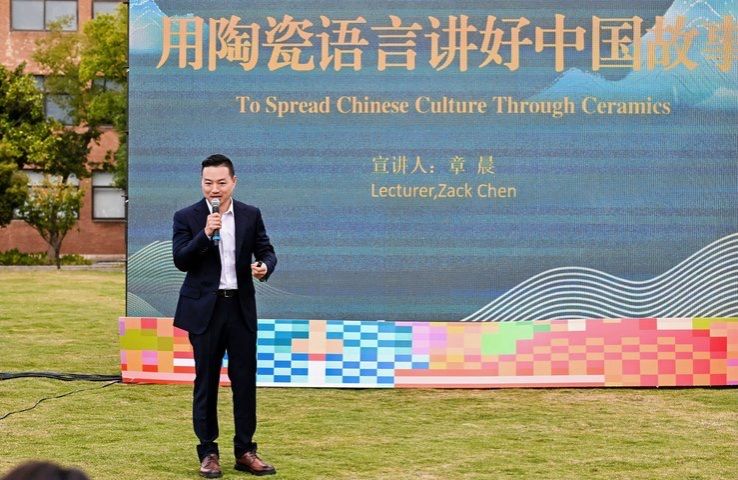 课堂无界,美育有声。马善程老师以《AI时代的艺术欣赏与审美体验》为题,引领学子欣赏科技与人文的交融,呼唤“以心观物,以情绘世”的创作初心;陶瓷非遗传承人章晨则以《用陶瓷语言讲好中国故事》微课,为大家讲述景德镇泥土如何承载千年文明,让中华文化在国际舞台绽放光华。秋阳草坪之上,传统文化扎根生长,启迪心灵对“美”的感知与创造。