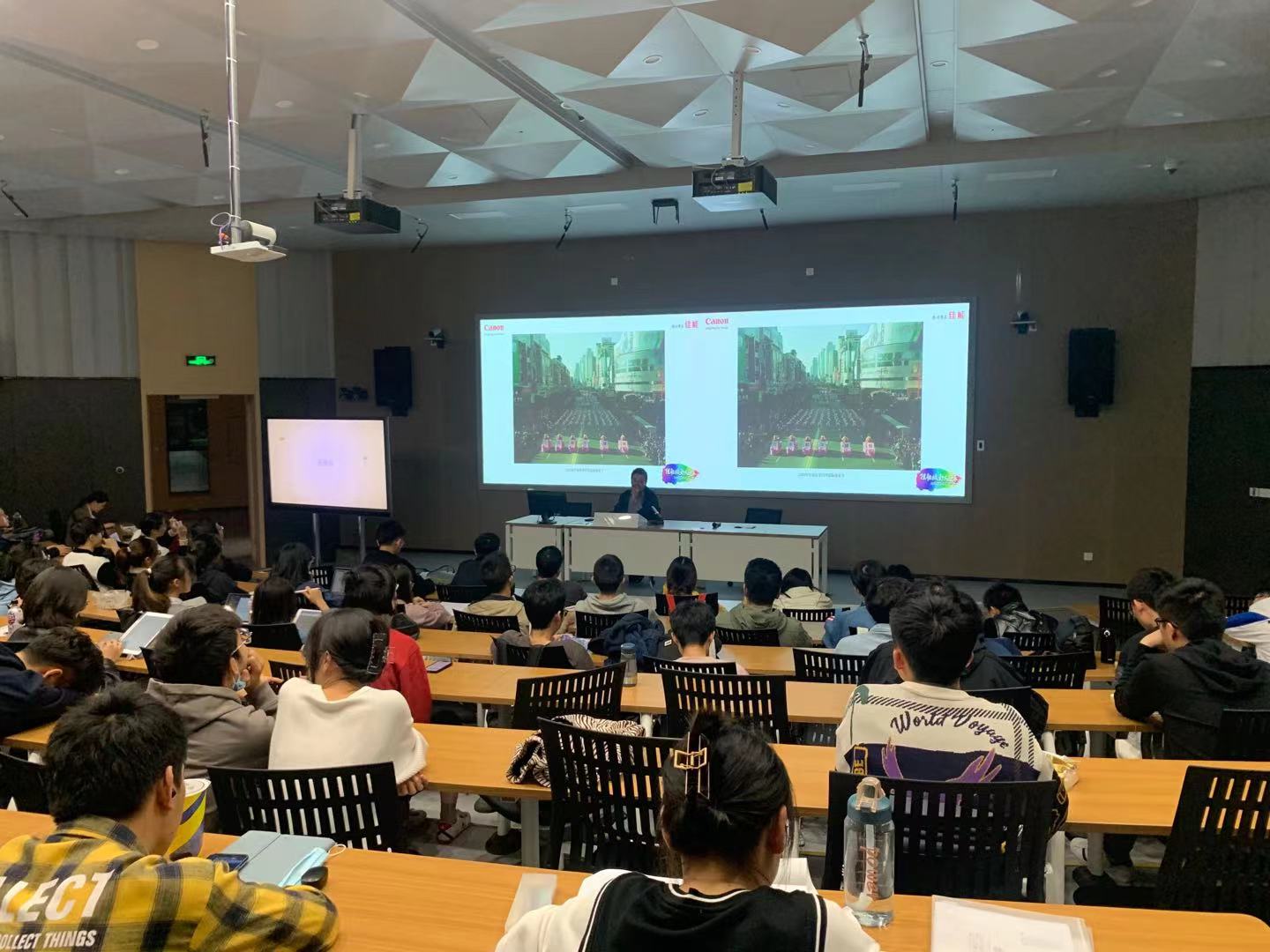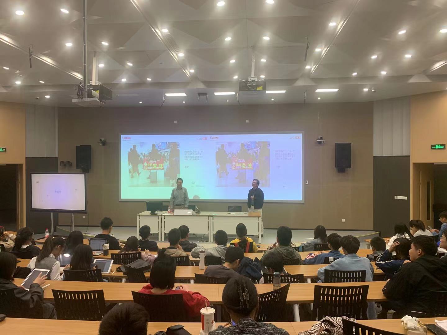开幕当晚,在本部阶三教室,戚颢老师受邀为师生们做了一场摄影主题讲座活动。讲座以《时代面孔——70年70人》和日常生活摄影为脉络主线,讲述了他与团队历时10个月,在宁波大市范围内采访、拍摄从1949年起70年间出生的70位不同年龄不同身份的新老宁波人背后的故事。讲座指出,时间沉淀能彰显出摄影的价值,平淡而普通的镜头下,也能呈现有滋有味、深刻动人的故事。正如把这70人放在一起,就可以让大多数人看到曾经的自己,看到远去的的岁月,看到这个国家、这座城市走过的路、留下的脚印。