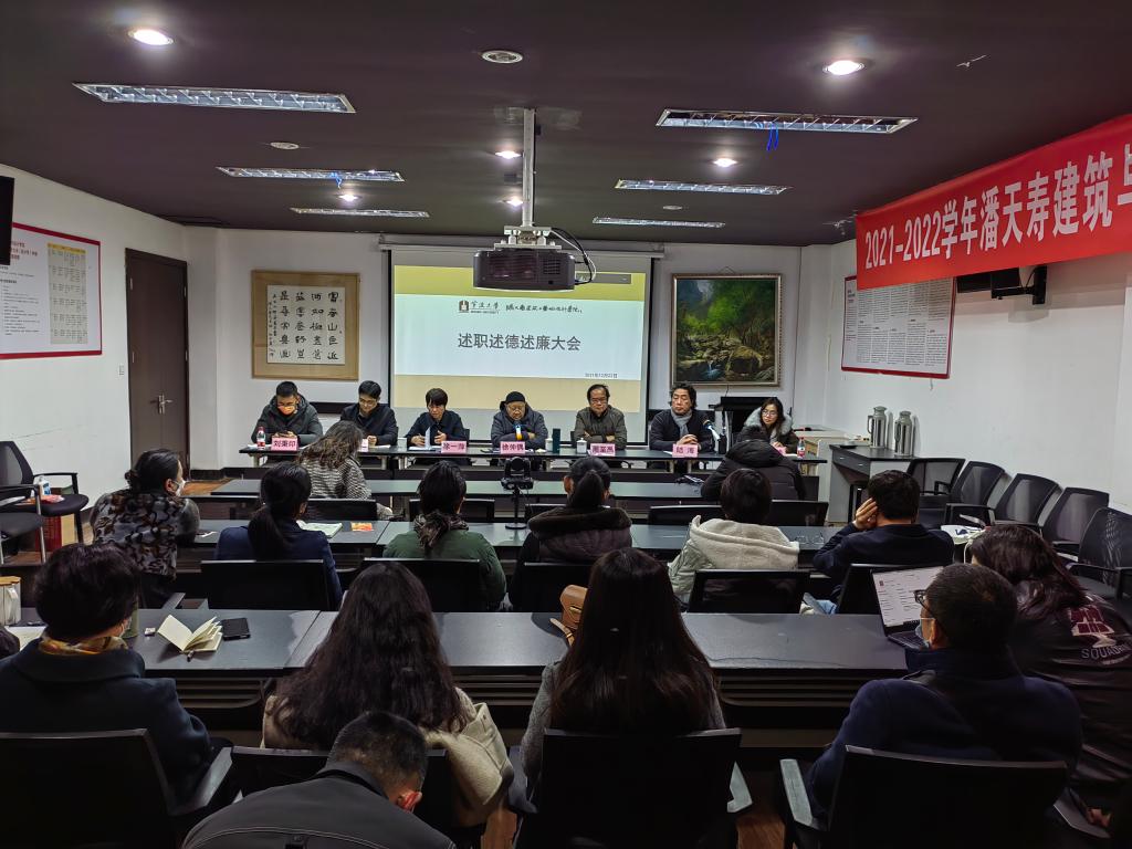 12月22日下午,学院在邵逸夫图书馆三楼会议室采用线上线下相结合的方式,召开述责述德述廉述法大会暨全体教职工大会,学院领导班子和全体教职工参加。会议由常务副院长陆海主持。