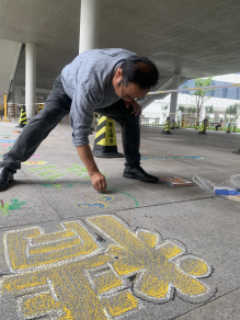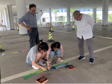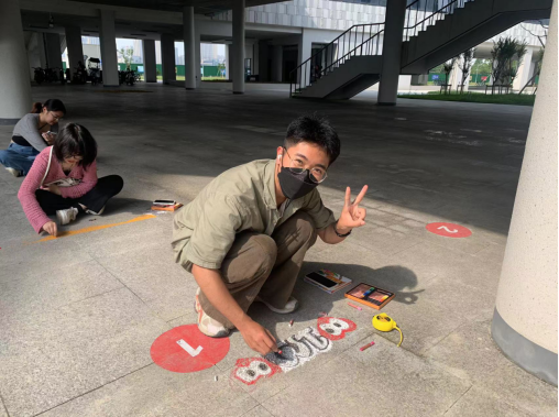 臻美设计美育工作室负责人周至禹教授表示,美术教育要注重审美的融入性,美育的引领性。学院重要的作用就是强调设计之德,艺术之美,用美育成教化,助人伦,让美育与人民的美好生活密切相关。美不再是博物馆里的展示物,而成为社会日常生活的一部分。为进一步加强校园文化建设,增添校园文化艺术气息,用艺术陶冶身心,激发同学们的想象力与创造力,臻美设计美育工作室在潘艺大楼架空层利用全员检测的时机,用粉笔彩绘隔离线,用艺术减轻压力,缓解情绪,同时展示了一批石膏彩绘,运用抽象构成、意象表现、创意重构等手法进行创意彩绘,让石膏模型成为新的载体,焕发出新的生命,趣味横生,赏心悦目,陈列在此,形成了校园内一道新的风景线,让师生员工进行核酸检测之时,也感受艺术的魅力。
