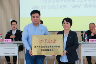 在浙江涌畅文化发展有限公司设立实习实践基地。校友办负责人向董旭总经理颁发了捐赠证书。