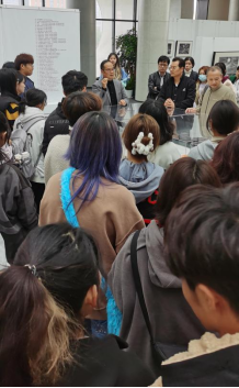 建校纪念周美育系列活动“坐云听风,向美而行——周至禹教授宁大写生展”的画展现场,一百多位大一同学在陈晟、徐时程、高鸿、胡秋波四位任课老师的组织下进行观摩学习,从艺术的视角感受宁大风景之美;并邀请周至禹教授从艺术感知和艺术语言的表现等方面,就风景写生的色彩问题和现场的师生进行了一场别开生面的具有学术高度的深度交流。