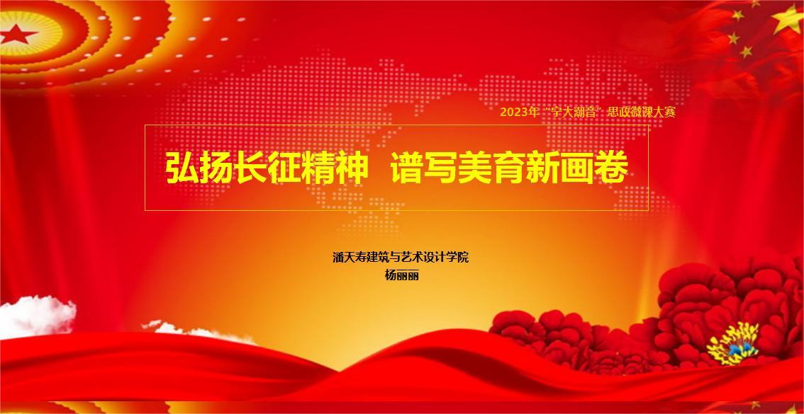 本次赛事,由校党委组织部、党委宣传部、校团委联合举办,以“续写‘八八战略’大文章,投身‘两个先行’走在前”为主题,分设教师组与学生组两个赛道。杨丽丽老师的微课《弘扬长征精神 谱写美育新画卷》,以画家李可染先生创作的经典国画作品《长征》和蔡亮、张自薿先生创作的油画《红军三大主力会师》赏析着手,通过经典美术作品赏析,和现场师生一起重温了长征精神和那段波澜壮阔的历史画卷。随后,杨丽丽老师指出,一代人有一代人的长征路,高校美育工作者要走好这一代人的长征路。她声情并茂地讲述了学院通过挖掘基础教学课程中的美育思政元素,强化育人实效;探究并实践“美育+思政”模式,让美育走出课堂、融入校园,走向社会,服务社会主义文化强国建设的系列做法。最后,杨老师表示,将牢记习近平总书记殷殷嘱托,从长征精神中汲取奋进力量,在传承和弘扬中华美育事业中,坚定新时代美育事业理想信念,为实现中华民族全面伟大复兴和实现人民精神共同共同富裕而不懈奋斗。