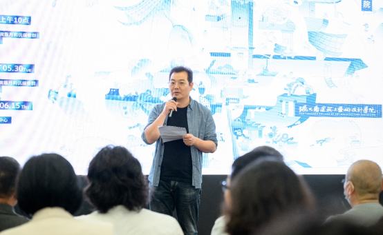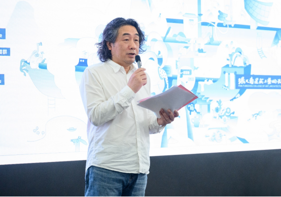 学院学术委员会主任周至禹教授也作了致辞发言。周教授指出各专业融合发展是学院目前发展的一大特色,学院应该继续以此为亮点,在艺术设计领域实现跨专业、破壁垒式发展。