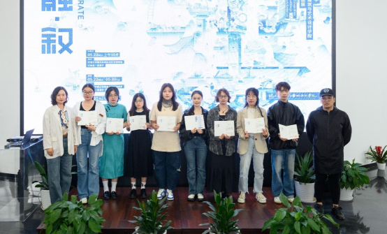学院党委副书记刘秉印宣读了“学院2023届优秀收藏毕业作品”名单,学院共16位同学的毕业作品被学院收藏,各系主任为各优秀毕业作品荣誉获得者颁发了证书。