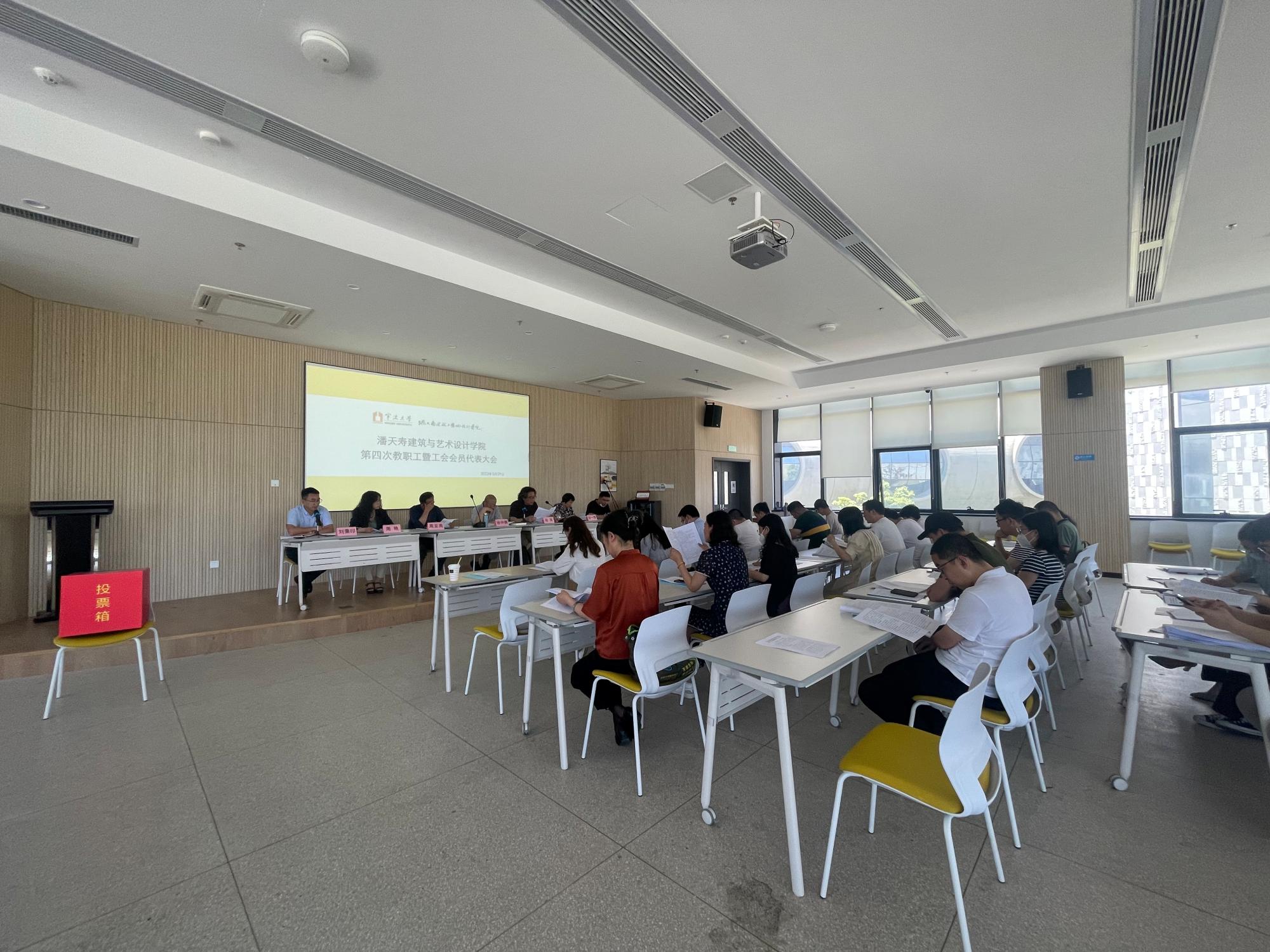 第四次教职工暨工会会员代表大会在黄庆苗黄陈月莉伉俪楼群教学楼213报告厅召开。会议由学院党委副书记刘秉印主持,34名正式代表参加会议。