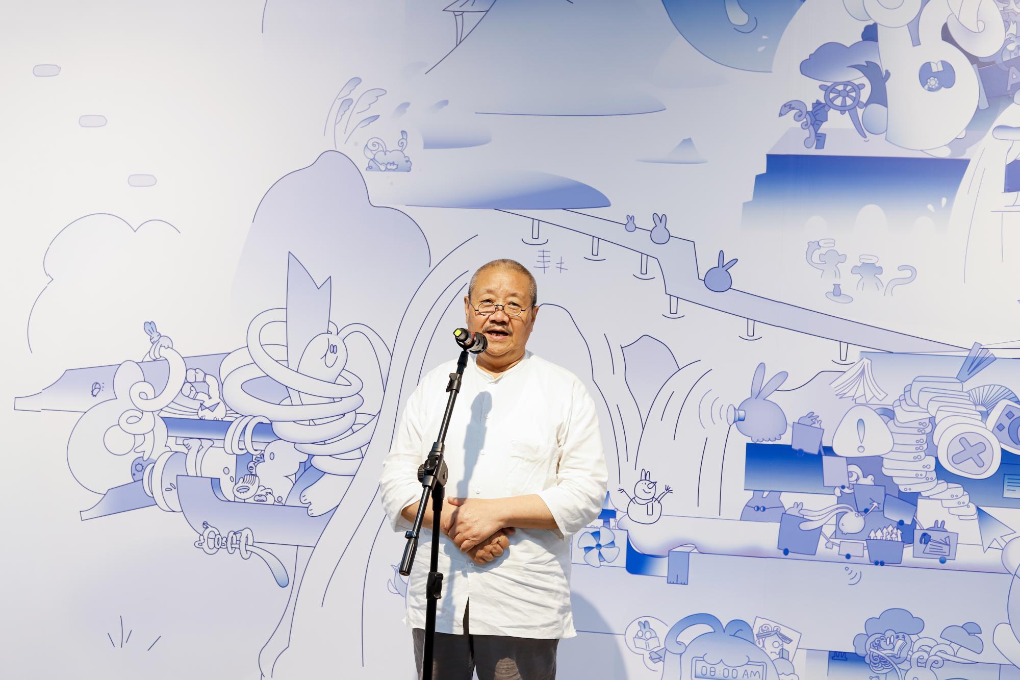 执行院长陆海作开场发言。陆海院长解释了此次展览“融·叙”的主题:“融合”是当代艺术设计发展的重要主题之一,在此次毕业设计展中,学院不同艺术设计专业和门类之间的有机融合,从而产生出许多新颖生动、意味深长的作品;同时,“叙事”也是这次毕业设计展的关键词,此次展出的设计作品展现了学生们对生活、情感和文化的理解。