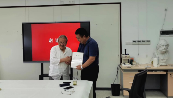 讲座最后,徐仲偶院长向骆献跃主席颁发了客座教授聘书,希望骆主席能常来指导学院的专业提升,并期待与美协能有更多的交流,共同组织更多的学术活动。
