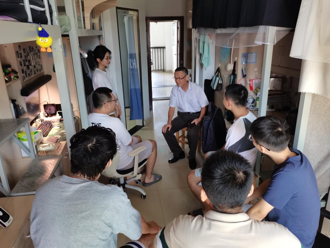 9月11日上午,校党委副书记冯杰走访学院学生寝室。学院党委副书记刘秉印、党校办胡月老师、学院辅导员蔡黎明等陪同走访。