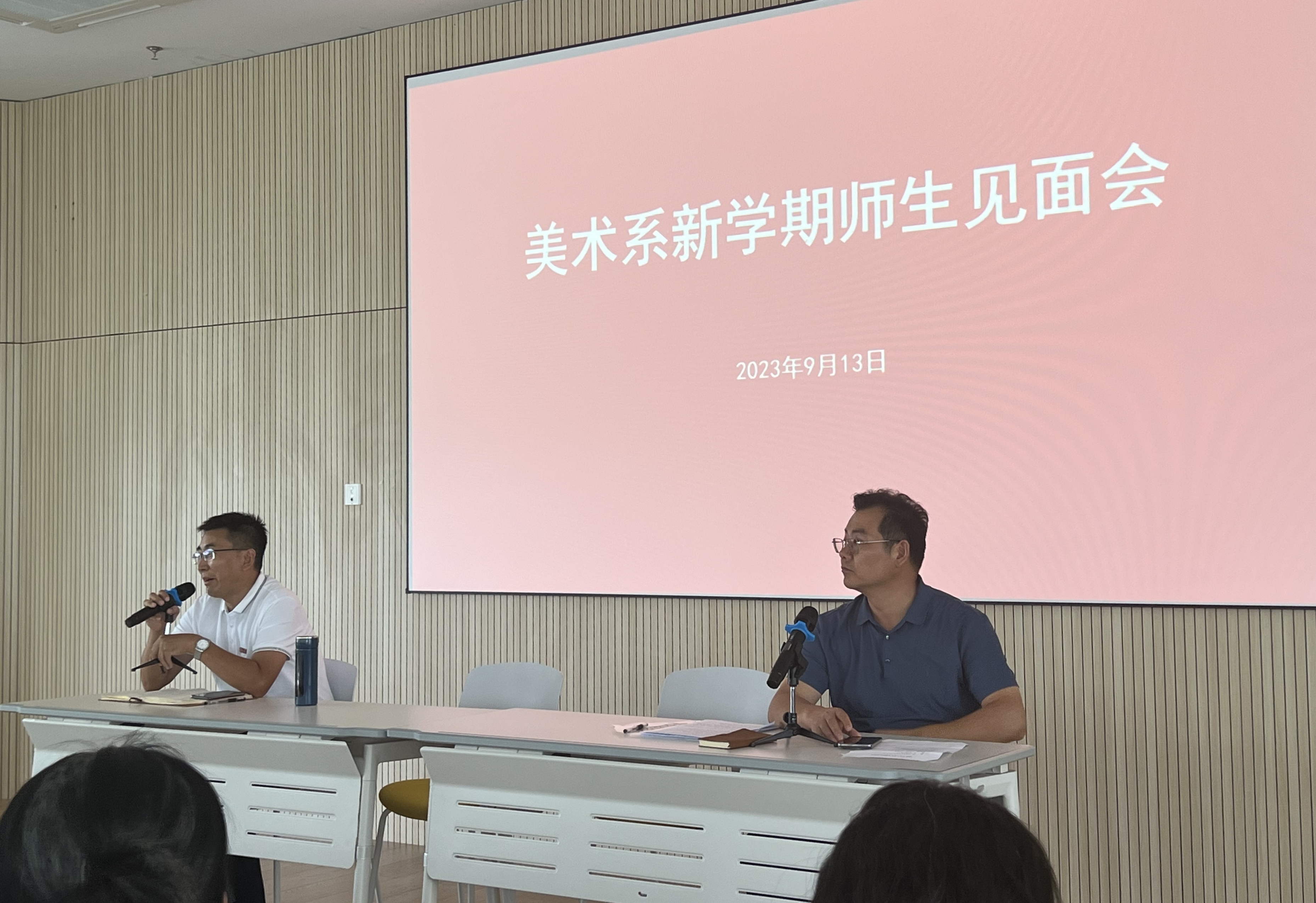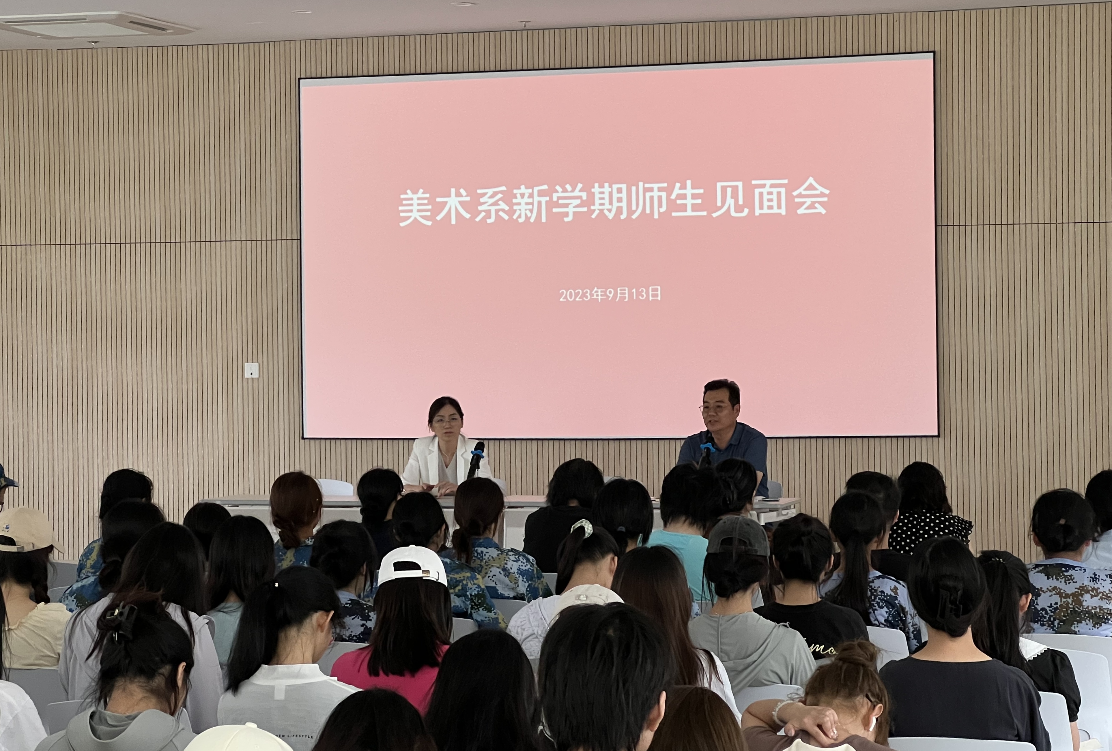 9月13日下午,我院美术系在潘艺教学楼213报告厅召开新学期全体师生见面会,学院教学副院长周艳、学院副书记刘秉印、美术系主任陈晟以及美术系全体师生参加。会议由美术系主任陈晟老师主持。