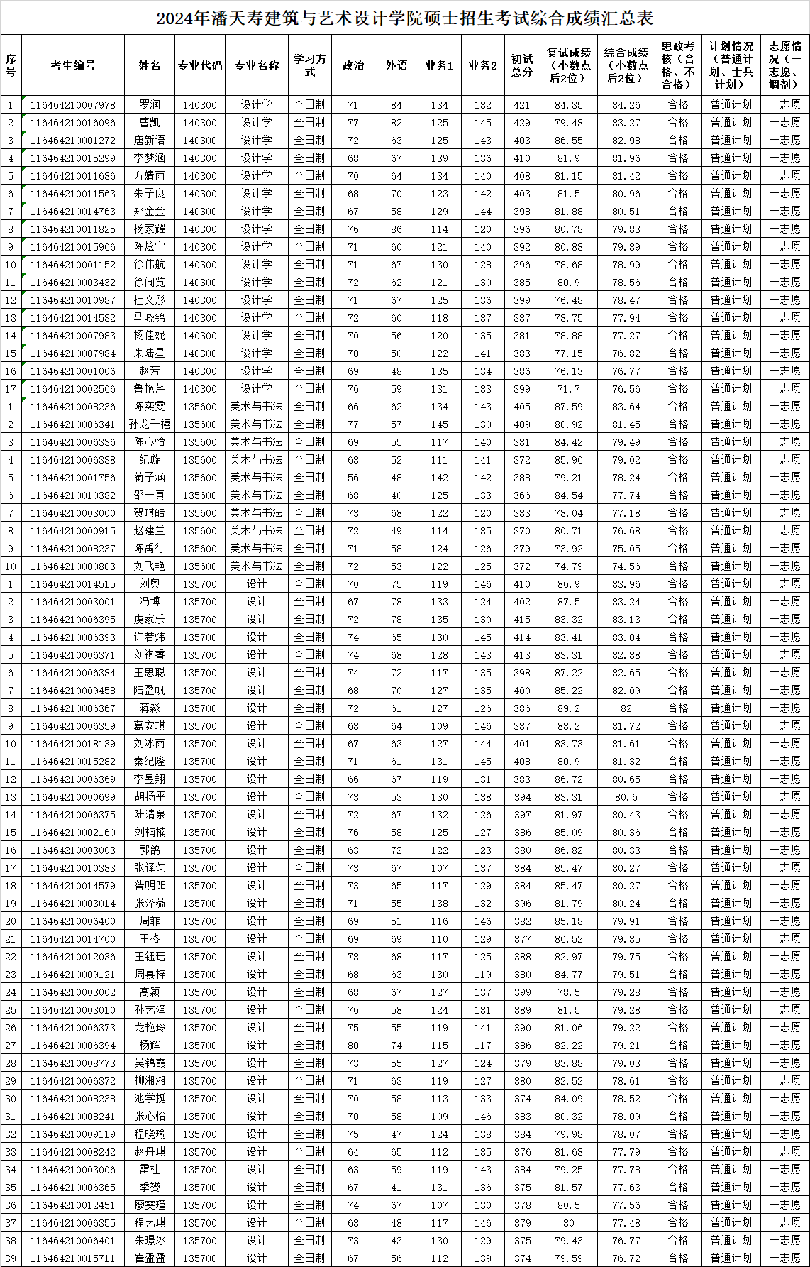 2024年潘天寿建筑与亚洲情色 硕士招生考试综合成绩公示