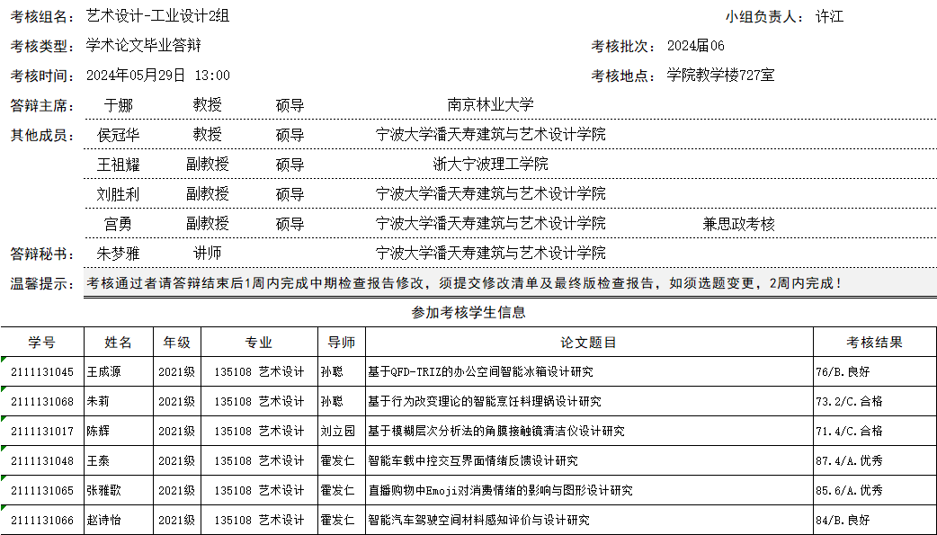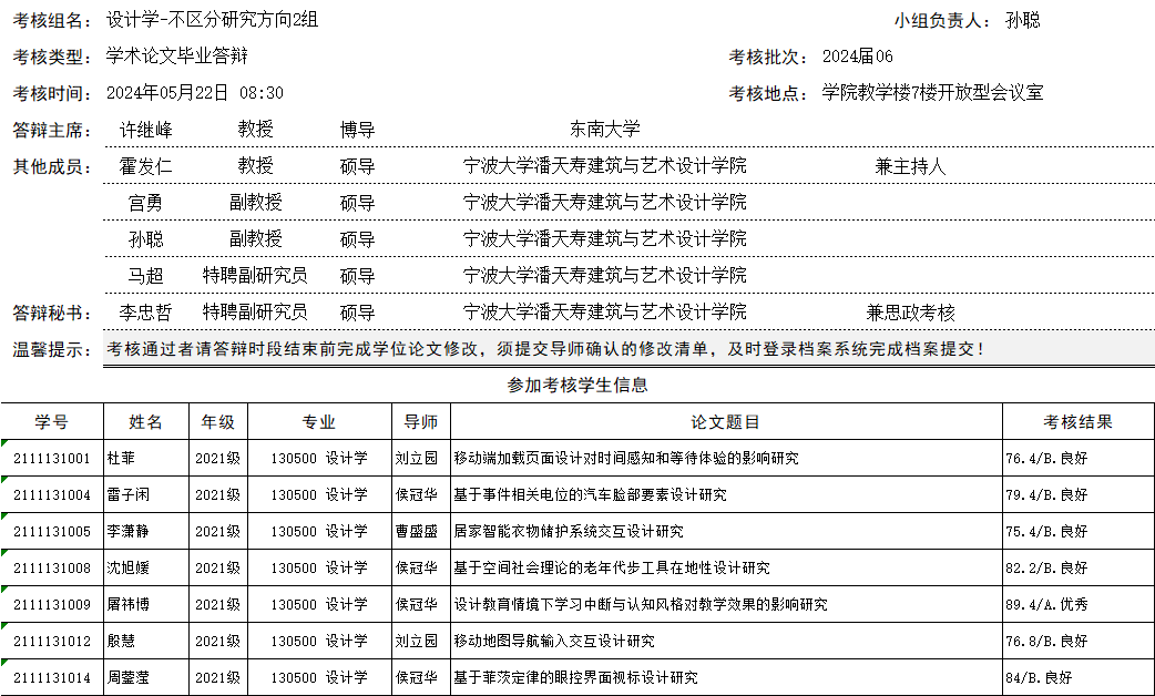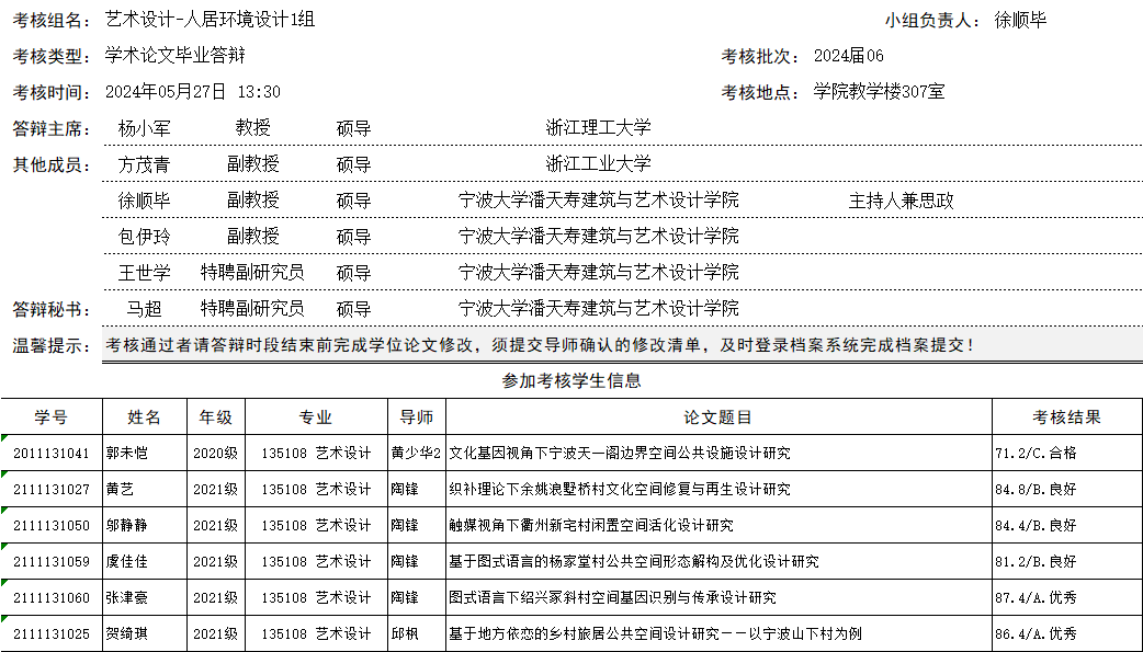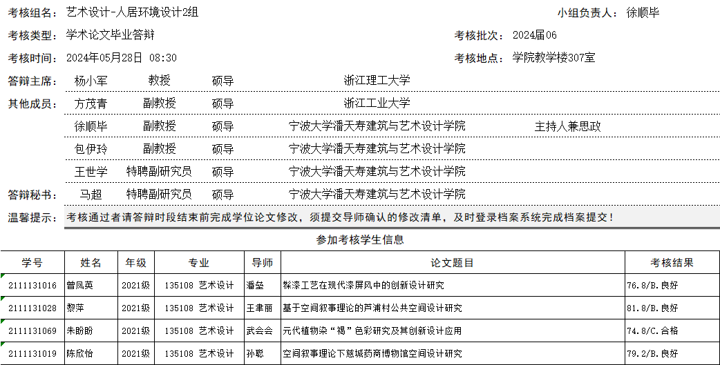 亚洲情色 2024届06批次潘天寿建筑与亚洲情色 硕士学位论文毕业答辩结果公示