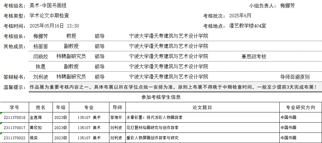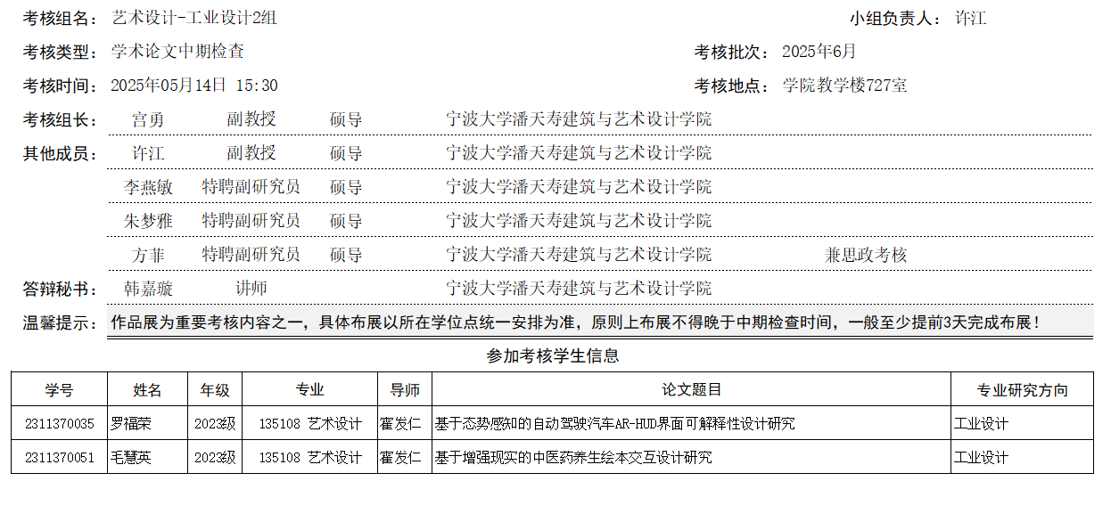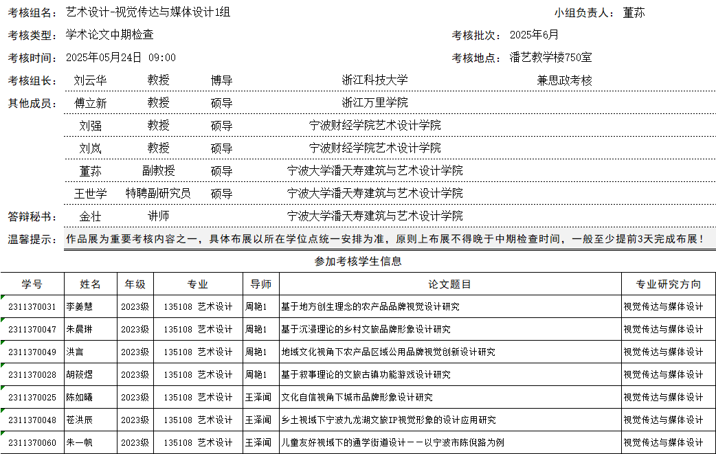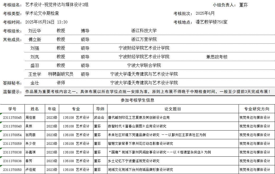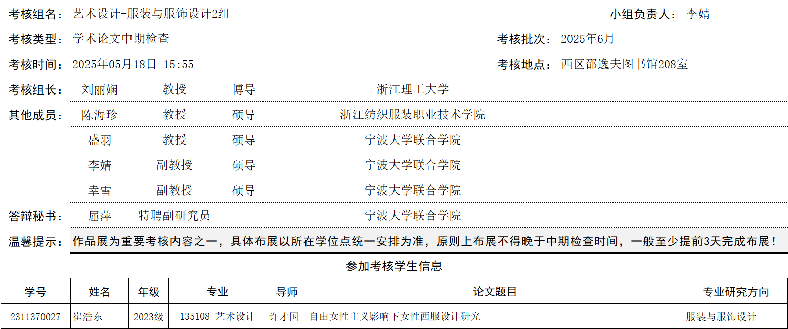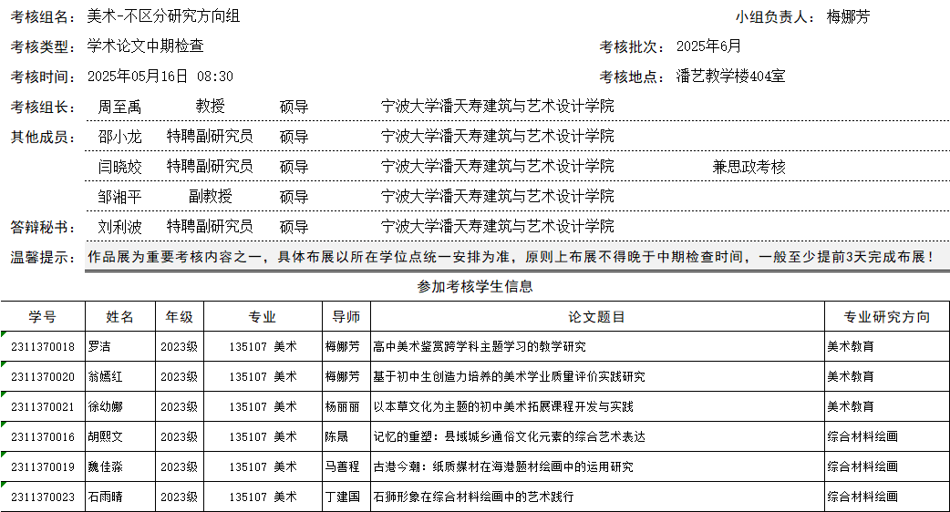 校级通知中期检查组织要求、检查内容、处理办法详见《关于开展2023级研究生学位论文中期检查的通知》(//graduate.asiaqs.net/info/1025/23660.htm)