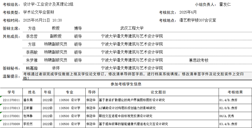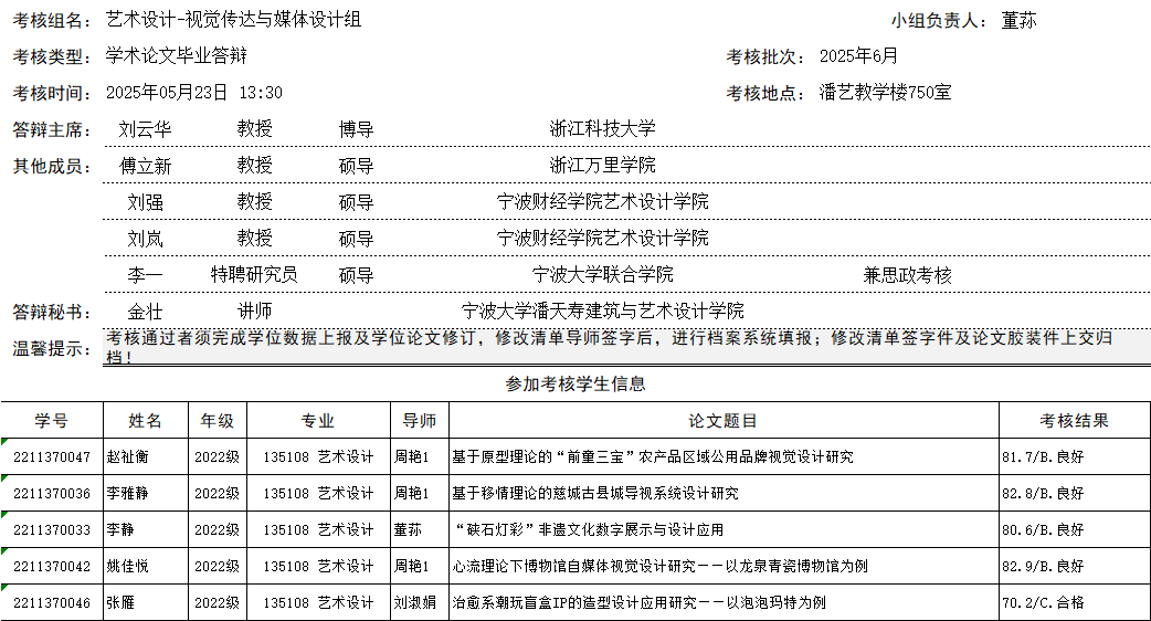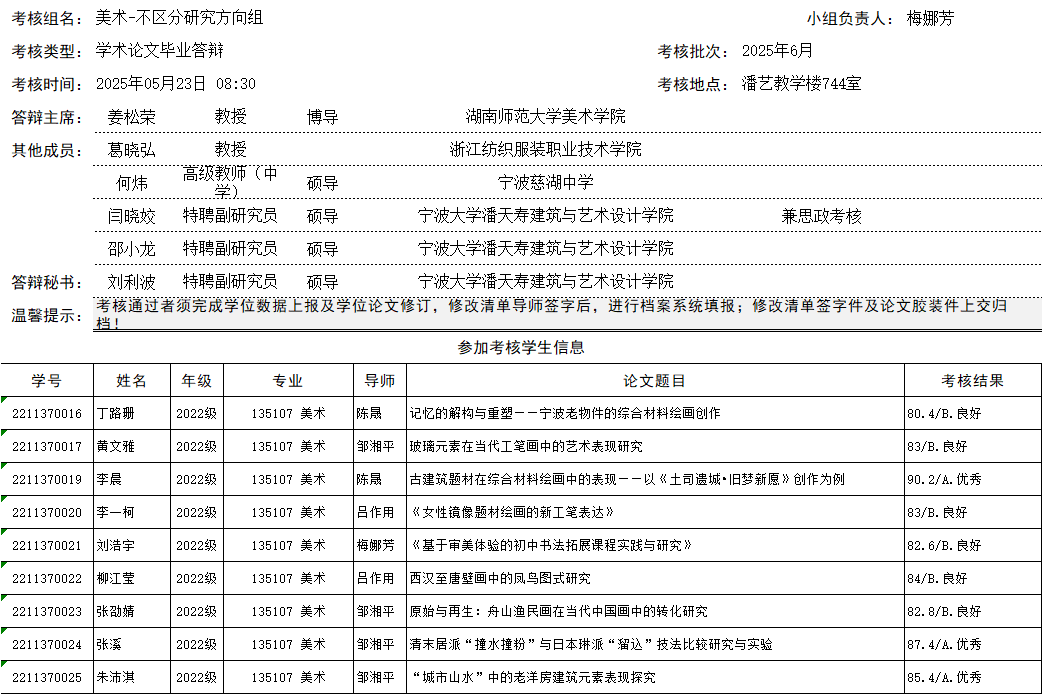 亚洲情色 2025届06批次潘天寿建筑与亚洲情色 硕士学位论文答辩结果公示