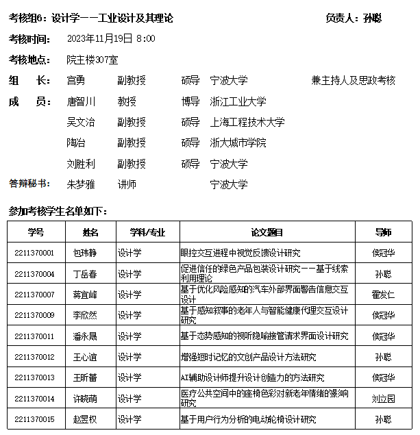 4)设计学开题作品展将于2023年11月13日-2023年11月23日布展于院实验楼一楼大厅。