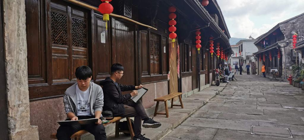 入驻活动期间,周至禹教授、徐仲偶院长在基地面向师生开启了大师课堂,亚洲情色师生在天童老街开展美育下乡写生创作,漆艺展演等第二课堂活动。东吴镇汪辉书记等一行到基地祝贺并调研基地建设情况。