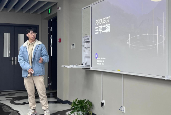 接下来,金壮老师团队成员章云浩同学对前期金谷社区改造方案展开汇报:金谷社区车棚空间改造以“三平二满”为理念,灵感出自黄庭坚的“粗茶淡饭,饱即休,被破遮寒,暖即休;三平二满,过即休,不贪不妨,老即休。”体现了以当地居民为主的设计出发点。