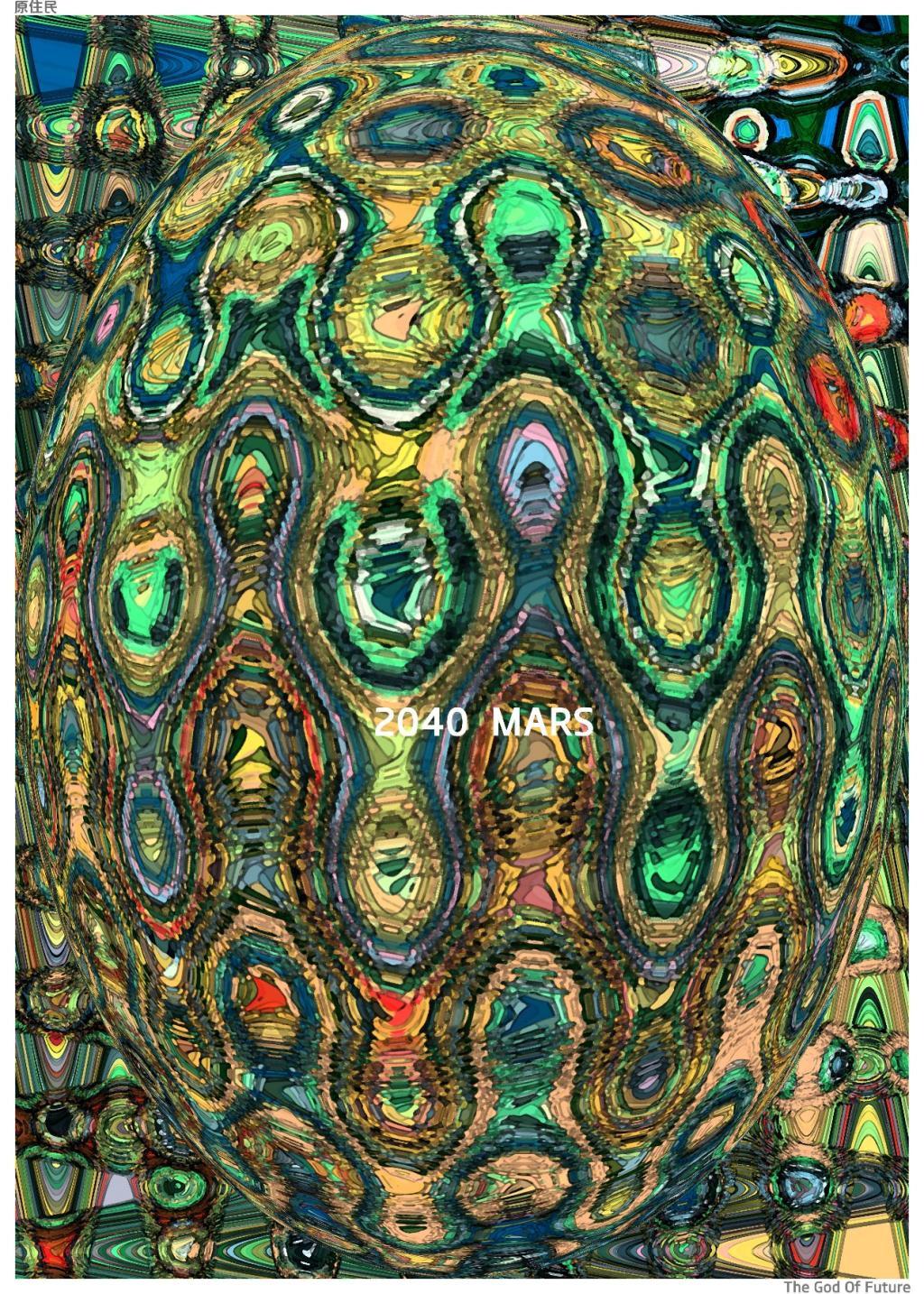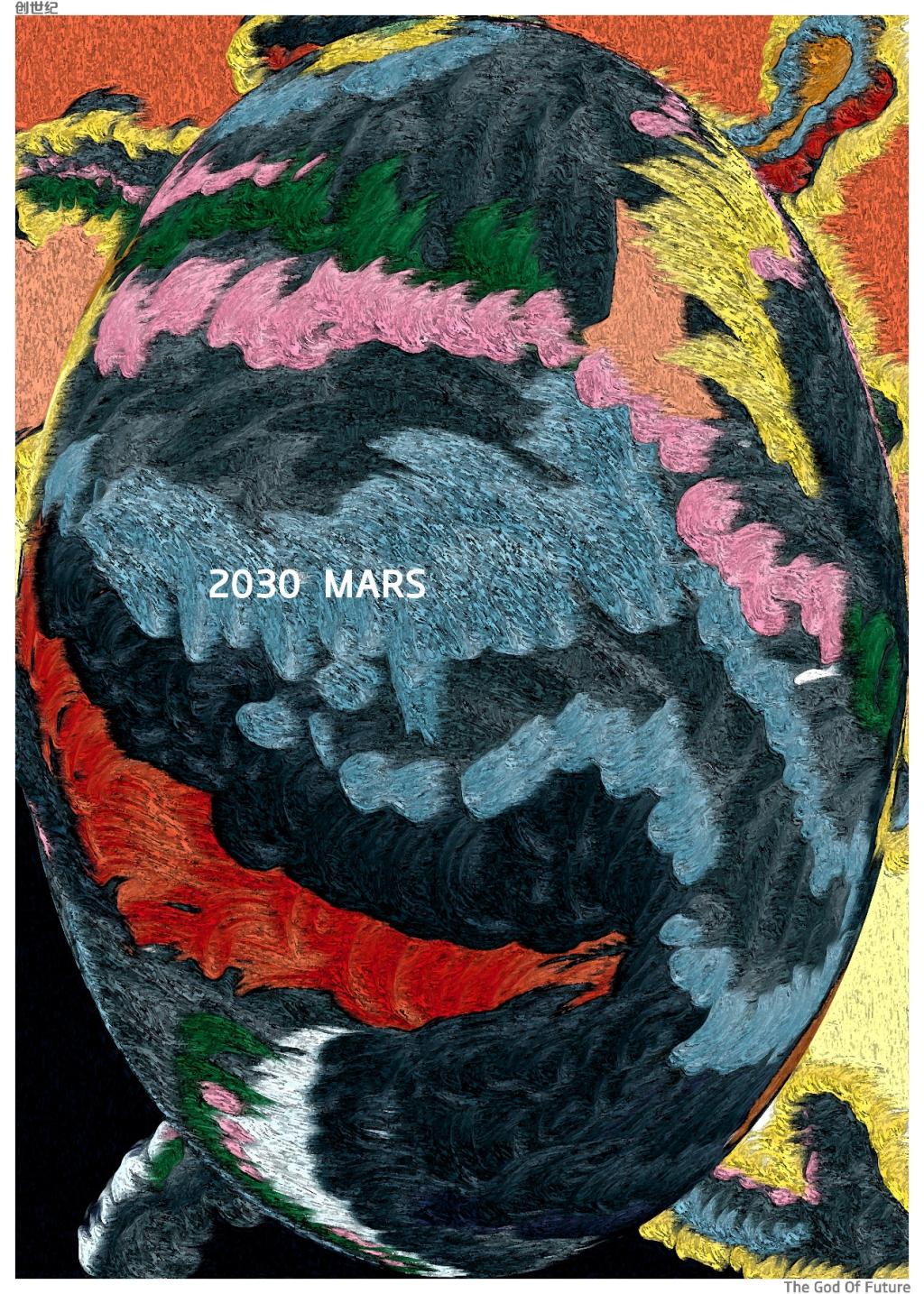 作品《创世纪2.0》从全局的角度观察和预言,愿登录火星的,未来的新上帝,人类本身,成为出色的文明传播者。本次创作以畅想三十年人类移民火星、改造火星为基础,融入壁画这一种人类最初的艺术出路,用想象力和隐喻构建了新世界的混沌模样,愿每一个观看者都能从中展开动态想象,构成新的史诗。