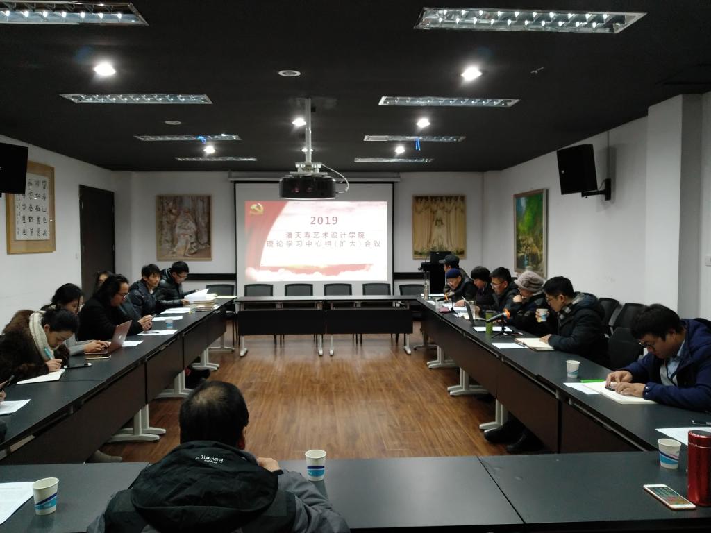 西校区逸夫图书馆三楼会议室召开党委理论中心组学习扩大会议,学院学术委员会主任周至禹教授、学院领导班子、学院党委理论学习中心组成员及各系(部)正副主任参加了会议。会议的主题是“学习习近平系列讲话精神、习近平给中央美院老教授的回信精神和全国教育工作大会精神,党政合力,凝心聚力,精心布局和规划2019年工作”。
