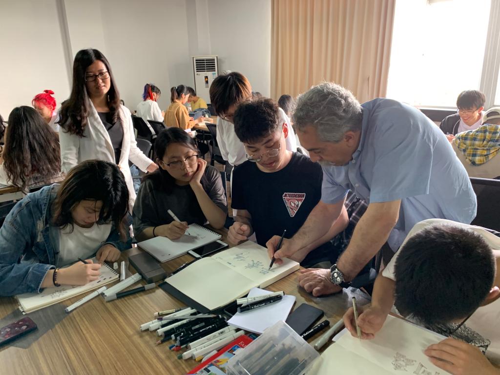 5月15日-5月24日,美国俄克拉荷马州立大学建筑艺术设计学院默罕默德ž贝尔贝斯(Moh'd Bilbeisi)教授为学院师生带来两周的大师班课程,课程主题是“聚焦于设计媒介的表现艺术”(Expressive Art for Media Focused)。课程内容共分六大块,包括“观察与绘画”、“轮廓与描绘”、“形态与表达”、“干介质表现”、“湿介质表现”和“数字化表达”,等等。