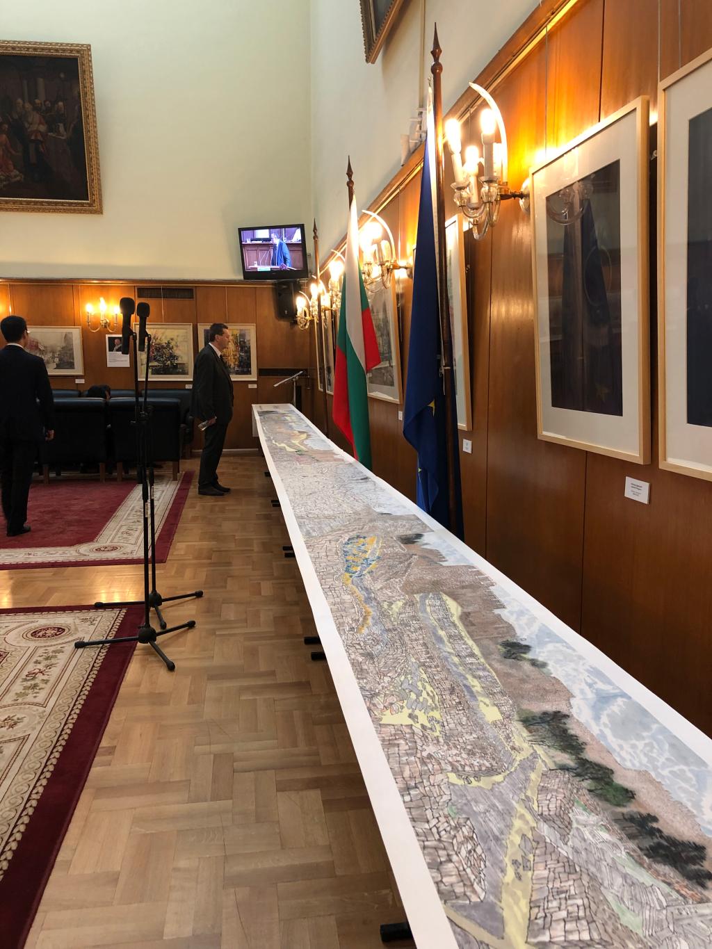 两国艺术家共创作128幅油画、水墨画等艺术作品,系列作品将持续展出至10月7日。其中徐仲偶院长创作的《穿门越堡叹千秋》,作品长9米,主要表达保加利亚人民不屈不挠奋斗精神,同时,潘艺学院学术委员会周至禹教授也共有18幅作品一并参展。