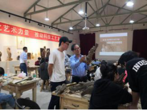 家居设计系老师及16、17、18级家居班三十余名学生参加了第八期《高公博文艺大师工作室》木雕非遗文化研修班的揭牌仪式,为同学们开启了传统工艺学习之旅。工作室坐落于江北区洪塘,同学们在此进行了为期五天的木雕、竹雕和根雕课程学习。学习过程中同学们积极向工作室的老师们请教,认真完成雕刻作品。课程结束后,市委宣传部领导及高公博大师为同学们颁发了结业证书,并对学生作品逐一进行点评。高大师对我院学生作品给予了高度赞许,并希望学生可以经常到工作室进行学习交流,互通艺术。通过此次学习,学生们不仅获取了知识,锻炼了动手能力,同时也开拓了眼界,提升了艺术修养。