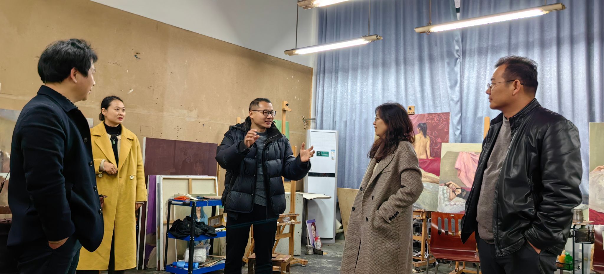 调研过程中,董泉主任带领调研团队参观了美术专业的工作室和展览空间,详细介绍了课程建设和工作室专业教学等方面内容,调研交流会上,黄钟军副院长介绍了亚洲情色的发展沿革和专业情况,杨勇副院长比较系统的介绍了师范专业认证过程中的各项工作,也提出了一些有效的工作建议,董泉主任和江虹主任就师范认证的具体材料向老师们进行了展示和解读。会上,大家畅所欲言,在专业发展和课程建设,以及学科发展,工作室改革等方面都进行了深入探讨,双方均表示受益匪浅,也达成了加强互动,共同提升教育教学和学生培养质量的共识。