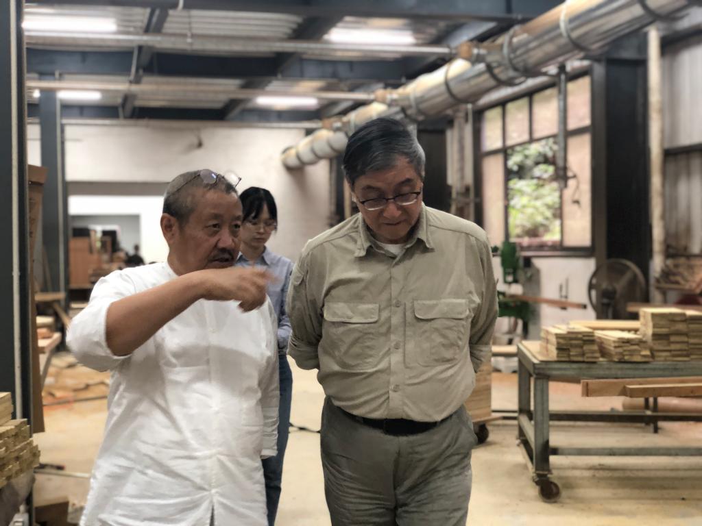 9月20日下午,潘公凯先生还参观了位于东吴镇画龙村的木与生活的宋明家具研习基地。