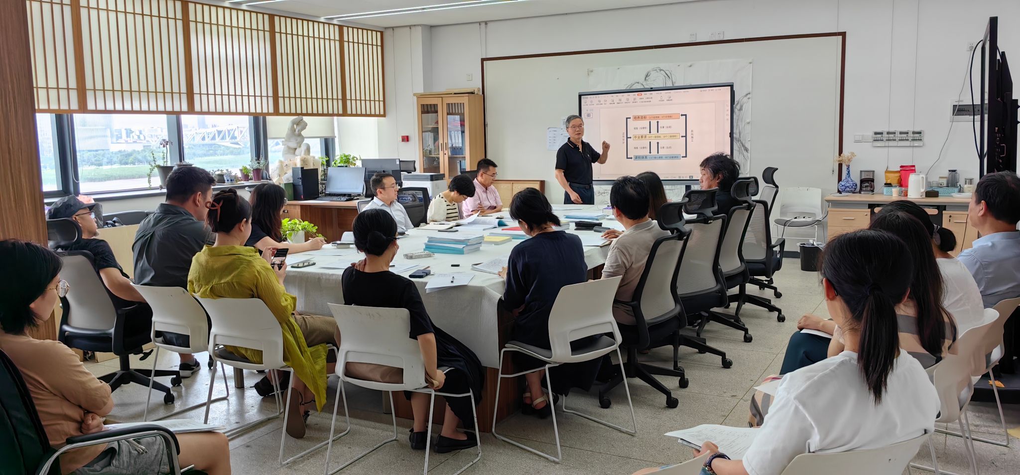 美术系系主任陈晟详细介绍了专业认证的具体情况、后续工作安排及暑期具体任务。陈晟对参与认证工作的全体教师与提供多方支持的领导表示感谢,并指出尽管过程中遇到诸多挑战,但在共同努力下,认证工作已按计划稳步推进。他特别强调了暑期的工作重点,包括专业教室和实验室的空间整理、公共空间的布置等,明确了自评报告提交的时间节点及专家进校考察的具体安排。