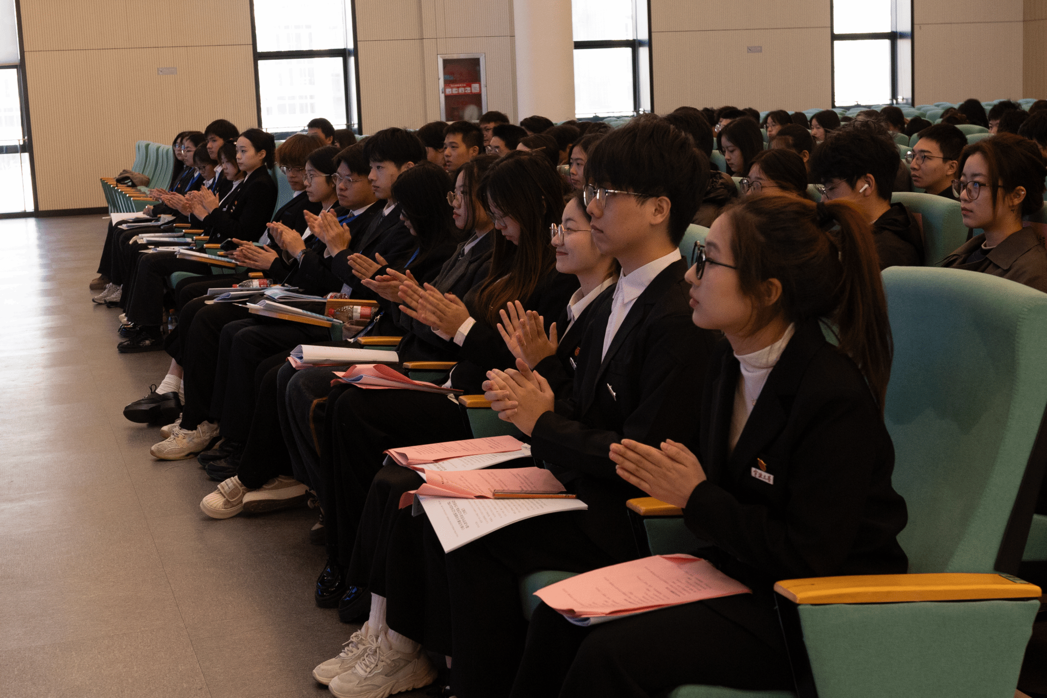在庄严的国歌声中,大会正式开始。院团委副书记程锦老师致开幕词,回顾我院学生会过去一年的工作,肯定了一年来院学生会所取得的成绩,希望院学生会成员强化思想引领、持续深化改革、聚焦同学需求,努力为同学办实事、解难题,奋勇争先开创学生会工作新局面。