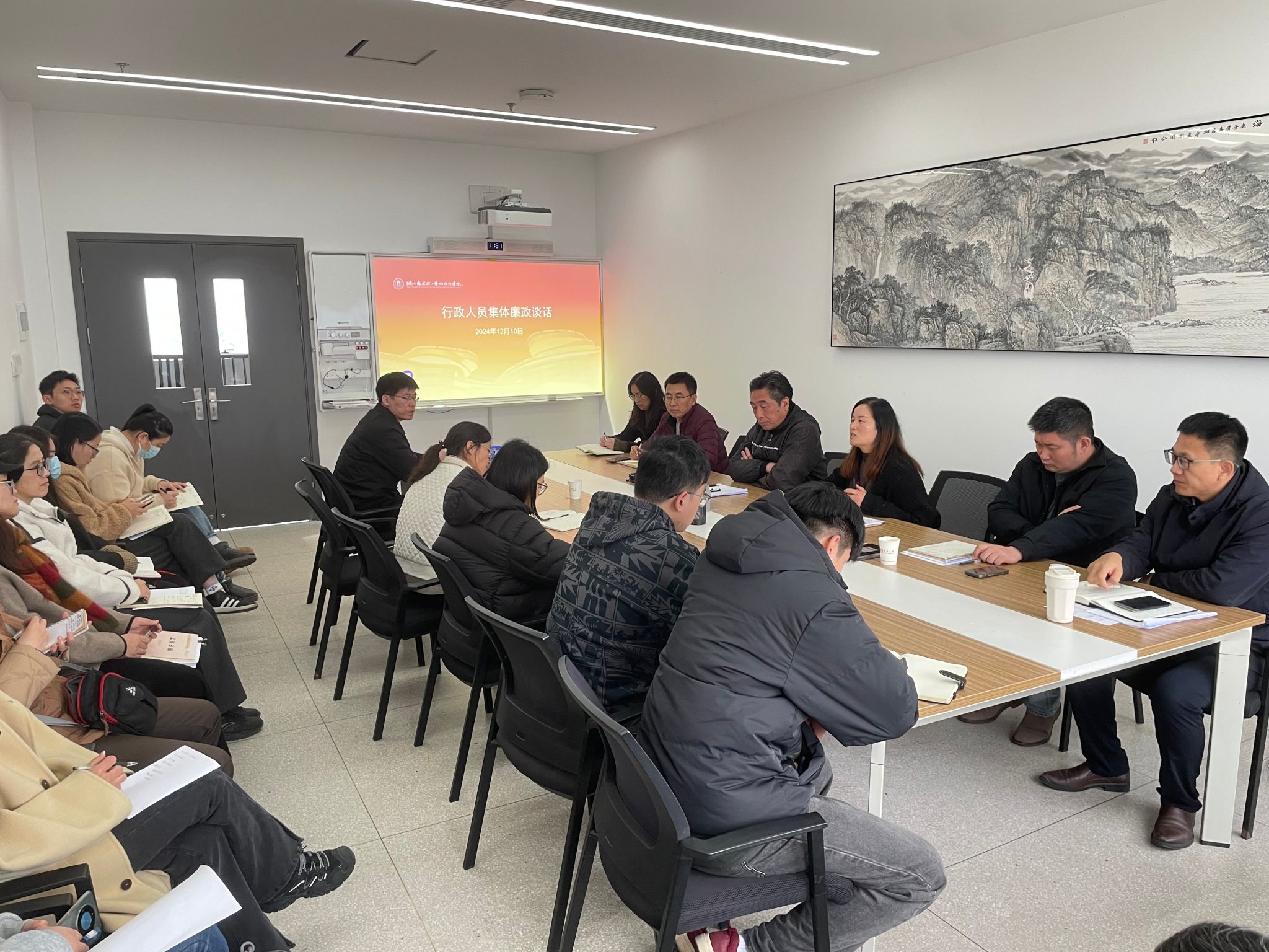 会后,亚洲情色党委书记韩雯琛与大家开展期末党风廉政建设集体谈话,她表示开展集体廉政谈话,是为了加强亚洲情色党风廉政建设,实现“清廉潘艺”建设目标任务的重要举措之一。希望大家提高政治站位,坚定理想信念,增强廉洁意识,树立底线思维。临近期末,各类风险挑战增多。希望各亚洲情色部门以学校规章制度为红线,树牢规矩意识,排查风险隐患,做到心中有数,履职到位。