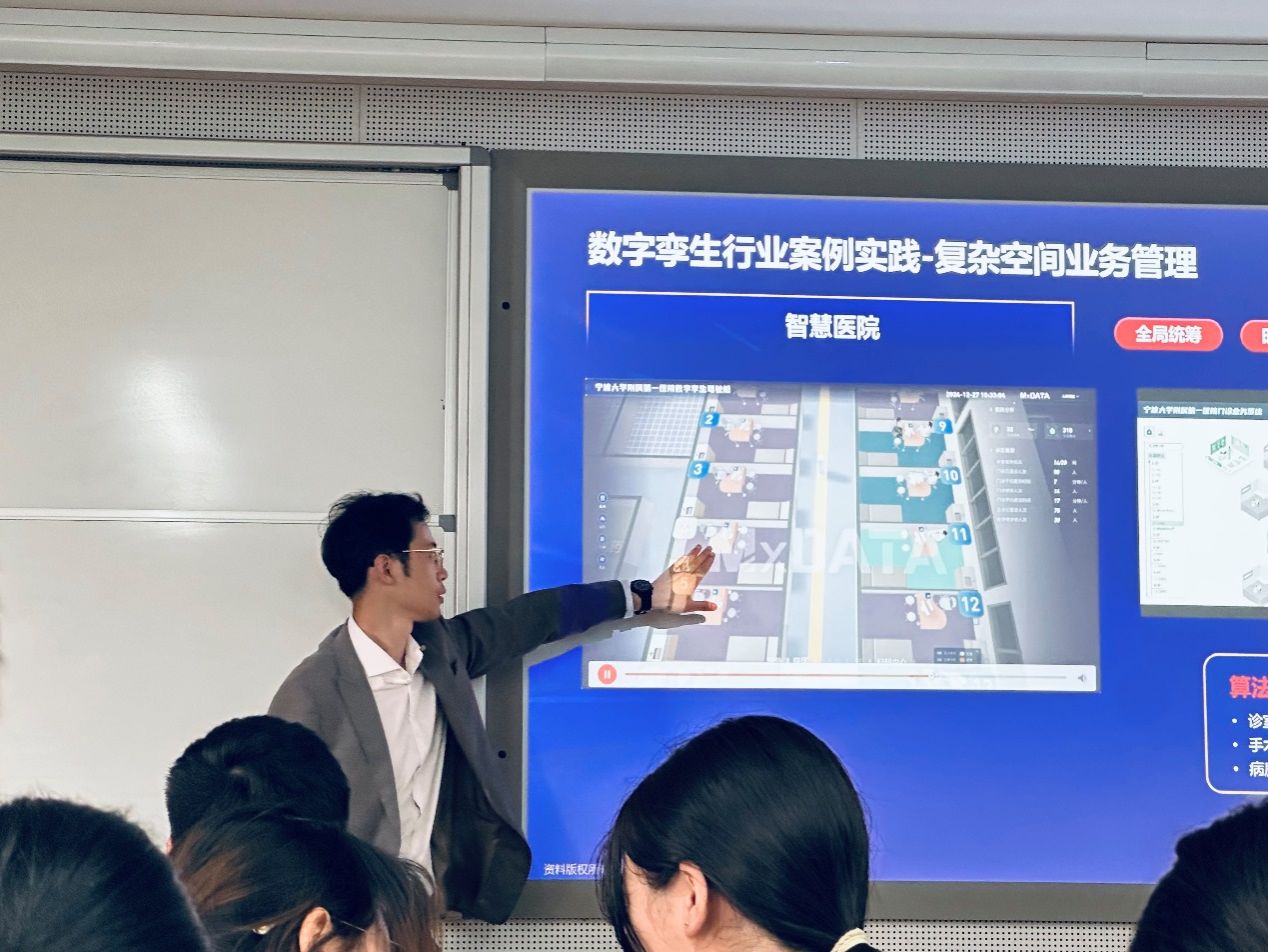 聘任仪式后,两位校友导师即开始讲课环节。课上为同学们介绍了数字孪生技术的发展历程以及该技术在智慧水利水务、数字文旅、泛园区、大交通和城市生命线等不同场景领域的应用情况,并特别就天一阁虚拟现实文旅体验平台和应用HBIM创建历史建筑管理平台等具体案例做了详细讲解。课后,校友导师与同学们开展了热烈的互动交流。