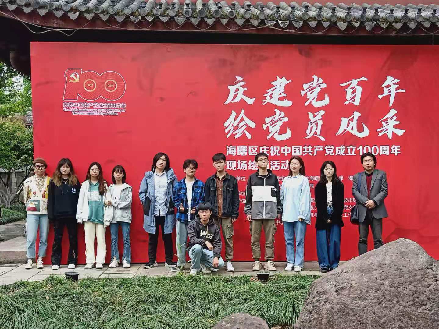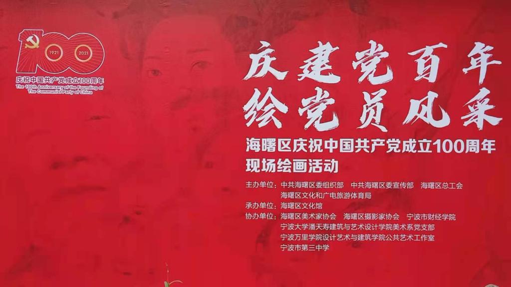 4月24日,海曙区庆祝中国共产党成立100周年现场绘画活动在月湖公园举办,潘天寿建筑与设计学院唐卫志、高鸿等十三位党员师生受邀参加,为二十余位奋斗在各行业的党员同志绘画肖像,记录他们奋斗新时代的印记。