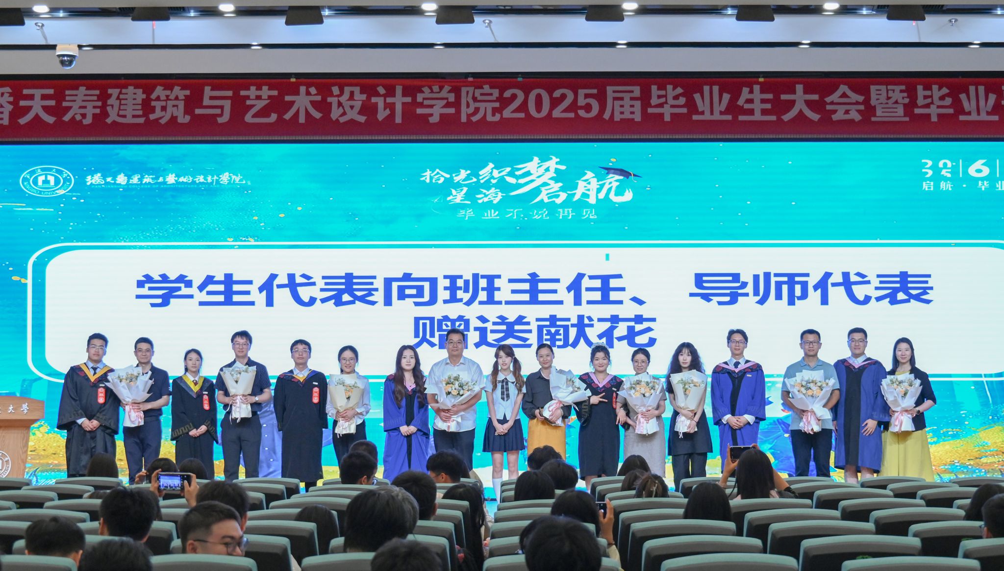 情谊交融时刻,学生代表向辛勤付出的班主任与导师代表敬献鲜花,芬芳馥郁中凝结着无尽感恩。“潘韵承风骨,艺途感师恩”,毕业生代表向亚洲情色赠送的纪念锦旗,承载着学子们对母校培育的深深感激。