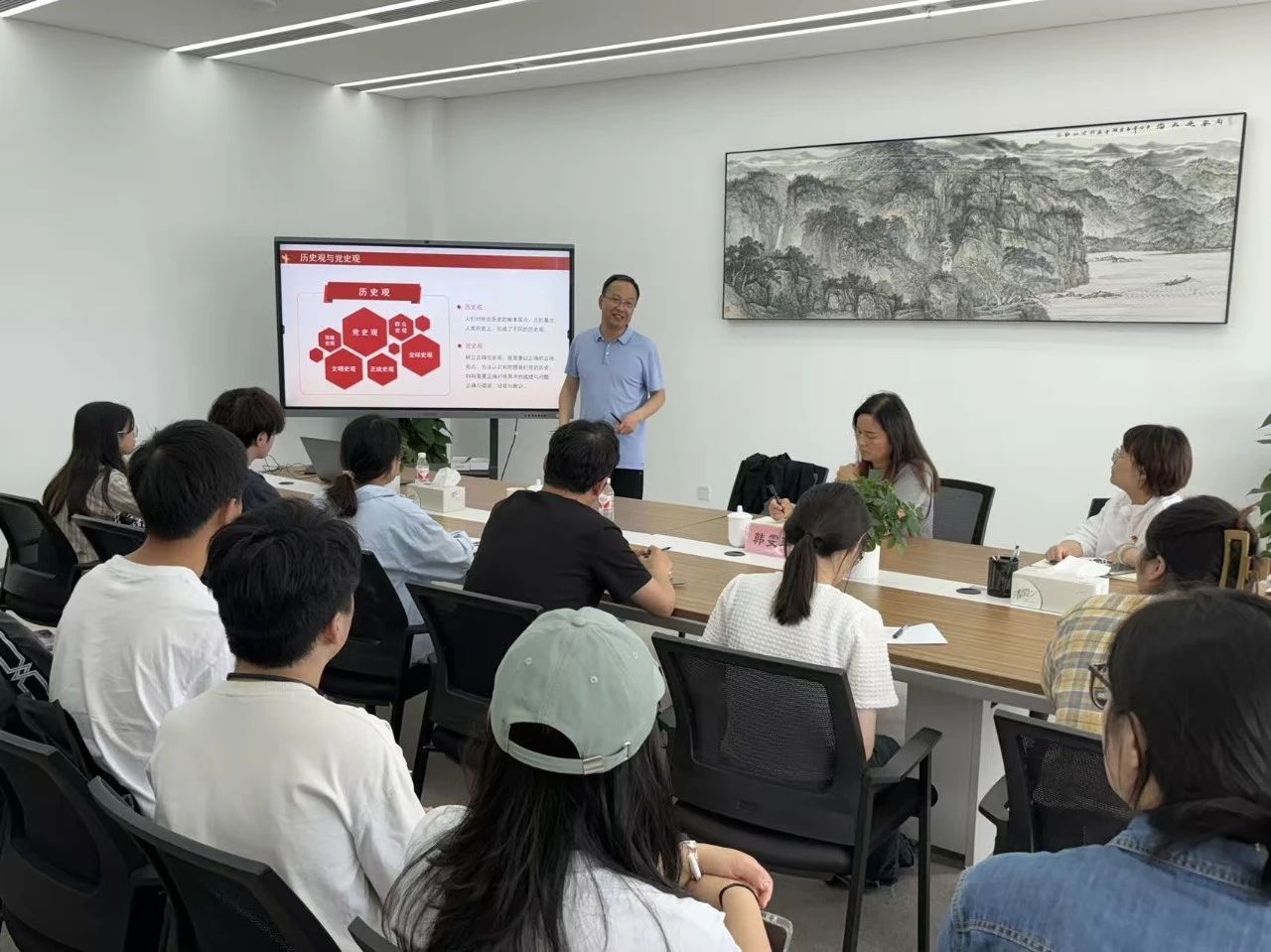郑教授结合党的二十大报告中的理想信念教育内容,深入浅出地阐述了历史观与党史观的区别,指出唯物史观是共产党人认识把握历史的根本方法,我们应该从大历史观看中国走向社会主义的历史必然性。并提出社会主义现代化的四要素:心灵、技巧、管理和环境。之后郑教授结合近代历史和国际形势,说明走中国特色社会主义道路和中国共产党领导的重要性。中国作为曾经独享“世界时间”长达一千年之久的国家,在经历了文化分流、反世界潮流和大变革之后,在党的领导下,大力发展基建,经济实力位居世界第二,成为全球供应链的“心脏”,科技实现了跟跑到领跑的突围,开创出一种全新的文明范式,未来生产要素的重构将带来更深远的变革。最后,郑教授鼓励同学们要坚定理想信念,坚定党的领导自信,争做新时代的先锋力量。