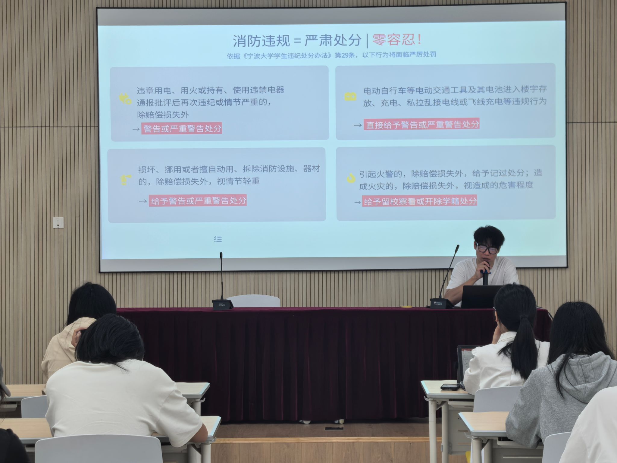 会议开始阶段,张明慎老师针对寝室长的权利与责任、寝室日常安全稳定工作以及文明寝室校规校纪等工作沟通和交流。在寝室长的权利与责任中,明确传达了学校对于寝室长角色的充分重视与肯定,明确的寝室长的相关职责和义务,着重强调寝室长要做好带头示范作用,带动室友维护寝室文明,加强寝室文化建设,遇到问题与辅导员及时沟通。在寝室日常稳定与文明寝室管理方面,明确划定学生不得使用或持有违禁电器这一红线,严格规范卫生管理与检查标准,强化晚归未归请假意识,建立安全,稳定,整洁的生活环境。同时,详细解读了寝室调整、校外住宿、宿舍安全等相关问题。