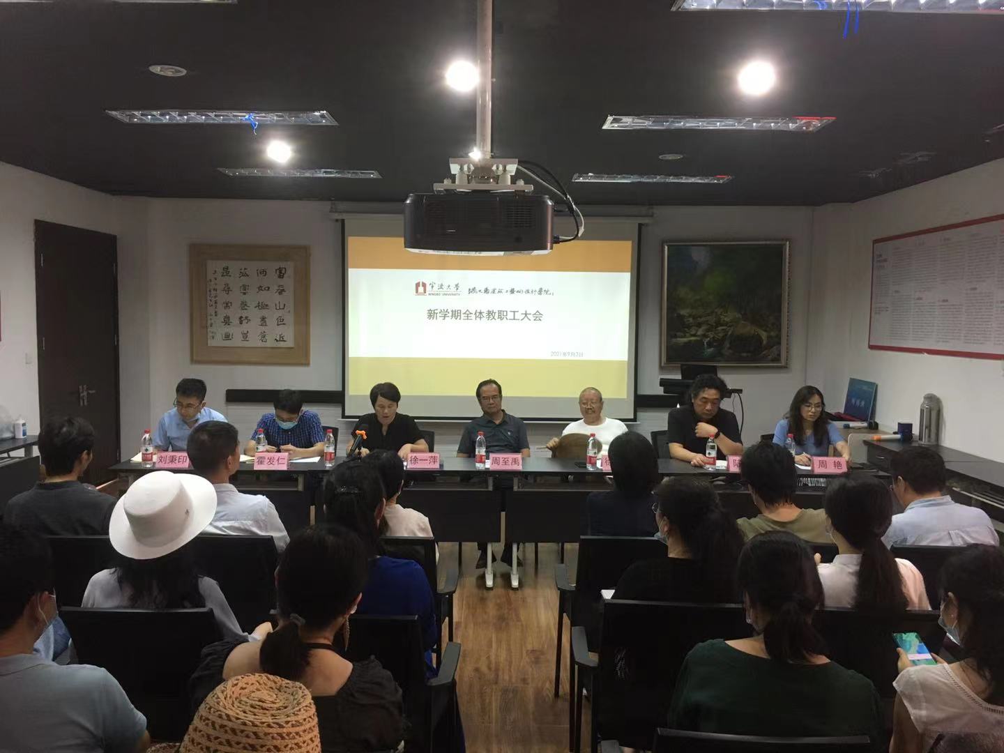 9月3日下午,学院在逸夫图书馆三楼会议室召开新学期全体教职工大会,学院党政领导班子、全体教职工参加。会议由常务副院长陆海主持。