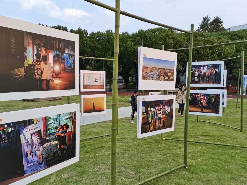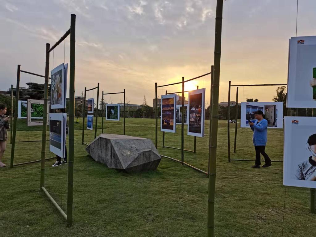 建校35周年暨三校合并25周年“筑梦风华”阿拉宁大摄影展在学校大草坪开幕,中国摄影家协会会员、浙江省摄影家协会副主席、宁波市摄影家协会主席戚颢、校党委宣传部副部长倪志华、胡斌老师,潘艺学院党委副书记刘秉印、涂慧老师等全校90余位师生参加相关活动。