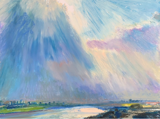 写生即创作。周教授通过在中央美术学院的教学案例,以及自己多年来对风景写生的体会,表达了写生即创作的主张,谈到在画面中如何进行色彩的艺术处理、造型把握和整体性调整等方面,特别强调了作画时要高度专注,要满怀艺术激情地进行表达。周教授还就具体的作品进行了案例分析,画中云的表现、色彩与笔触的融合等方面给现场的同学们带来了非常直观的参照和有益的启发,尤其是对炭笔写生的黑白灰关系和丰富的色度进行解读,把素描中的色彩感进行提示呈现颇有新意。